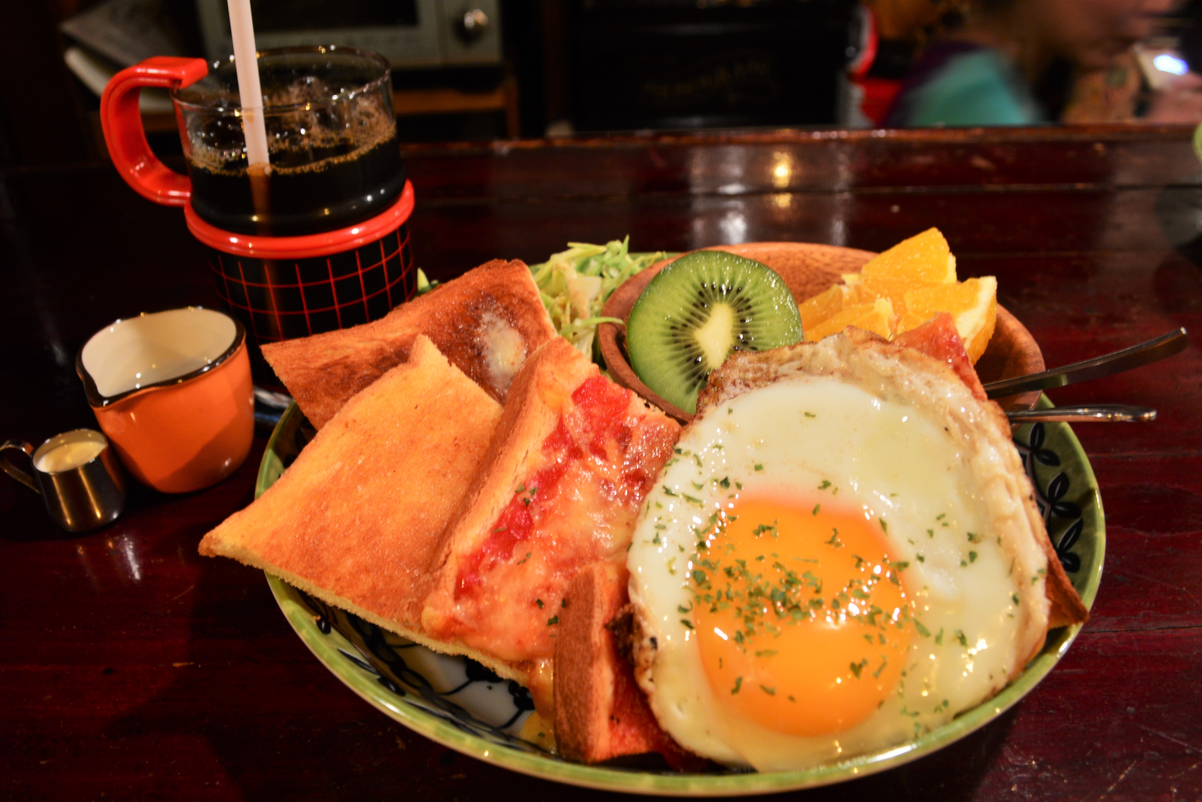 「洋」=チーズトースト・バタートースト・目玉焼き・サラダ・フルーツ盛り合わせ
