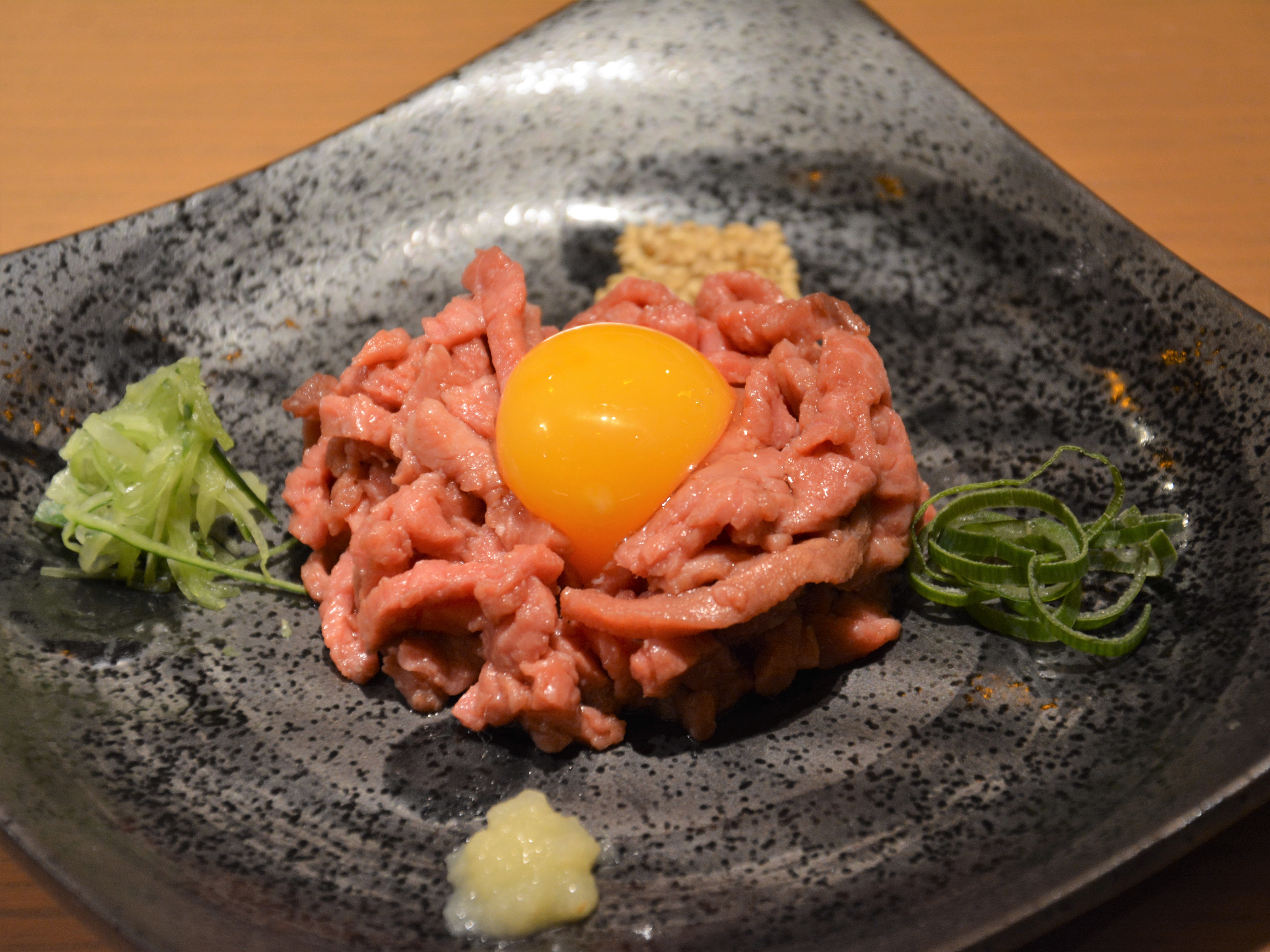 また、本店では新たにフレンチ出身のシェフを迎え、真空低温調理法で調理した「コールドビーフのユッケ風」(税抜980円)「低温調理のしっとりレバー」(税抜780円)などもご用意しております。店内はバル風に仕上げ、1階のカウンターではチーフがお肉を目の前で裁く様子を見ることができます。