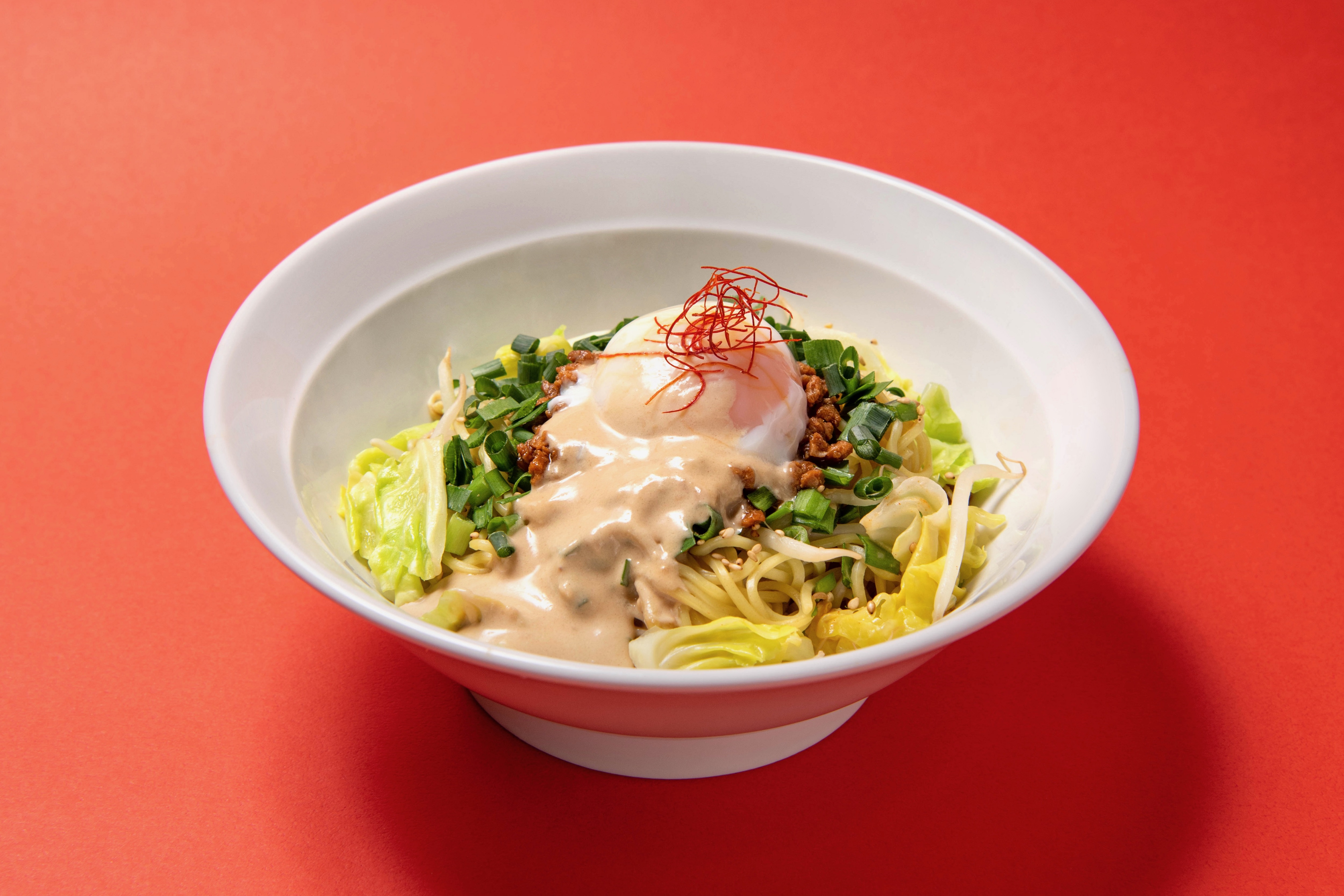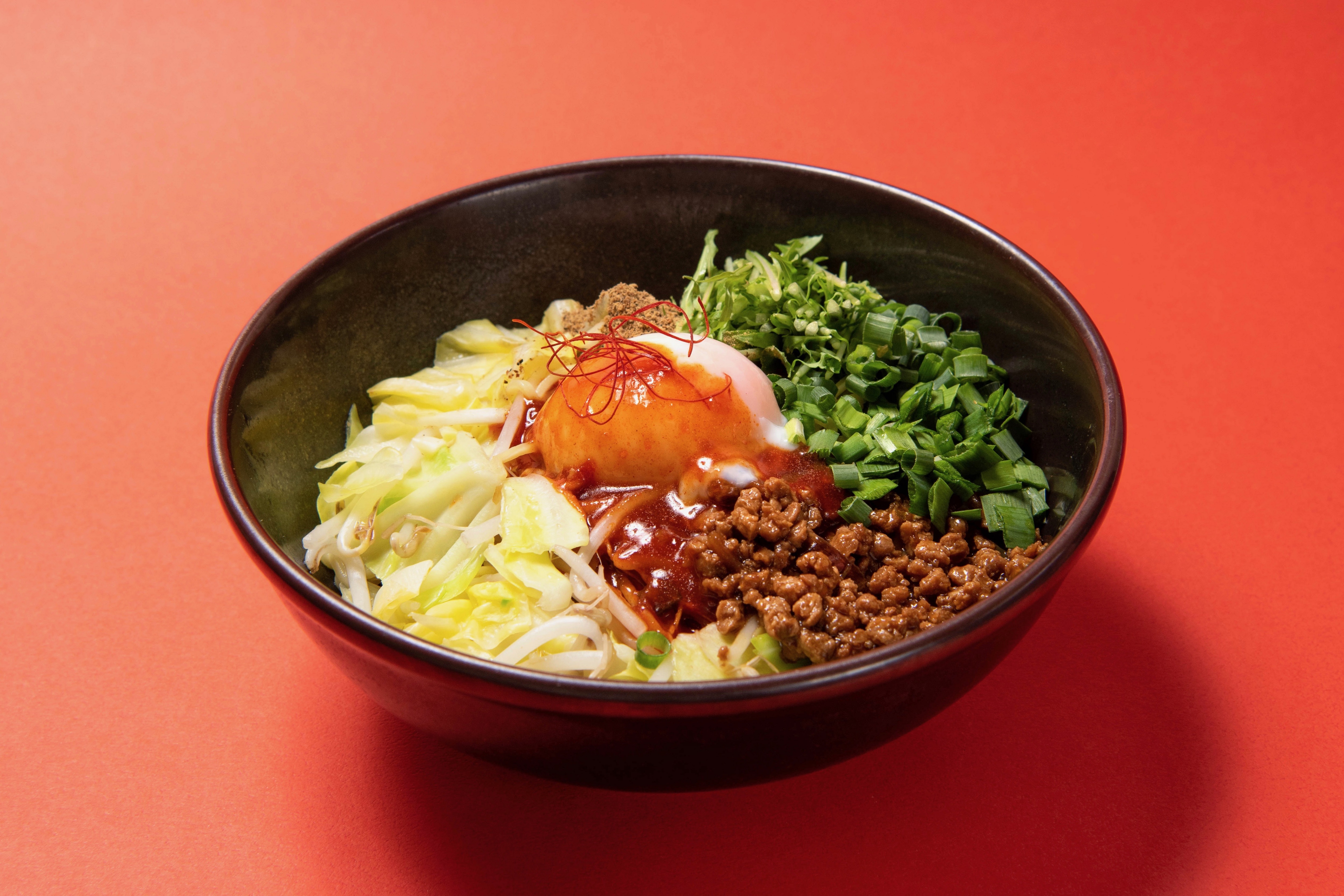 台湾特有の紅葱醤と混ぜ合わせたヘルシーな大豆ミートと半熟卵をトッピングした、坦坦まぜそば。