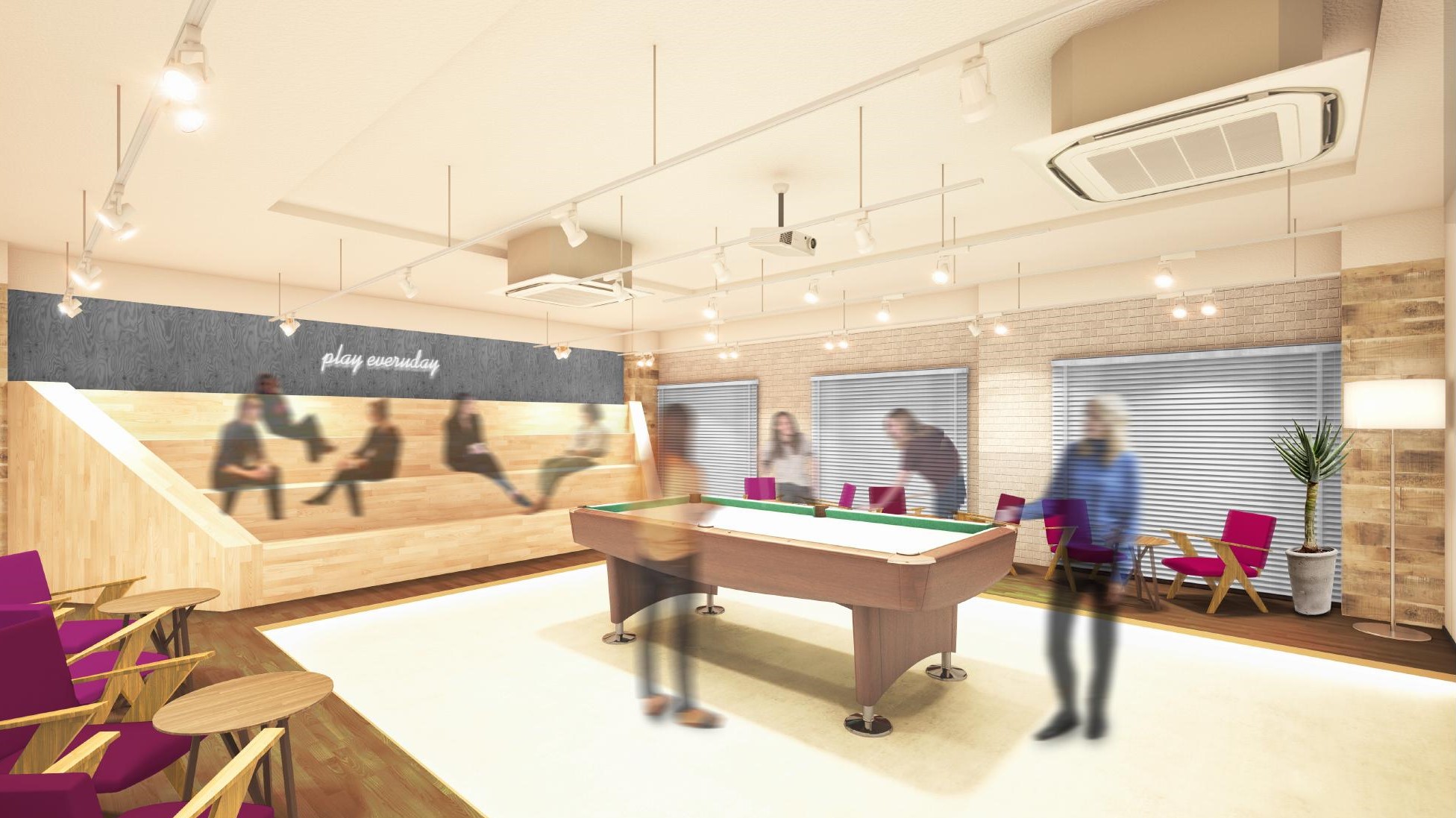 ターゲットについては、大阪京都勤めの20代~30代の社会人を想定。プライベートは重視しながら、会社以外の新しい交流を広げたいビジネスパーソン(単身者、正社員(特に転職・転勤組)、独立系)や、なかには社会人と関わりを持ちたい近隣の大学生(立命館大学生)など、幅広い入居者構成が想定されます。