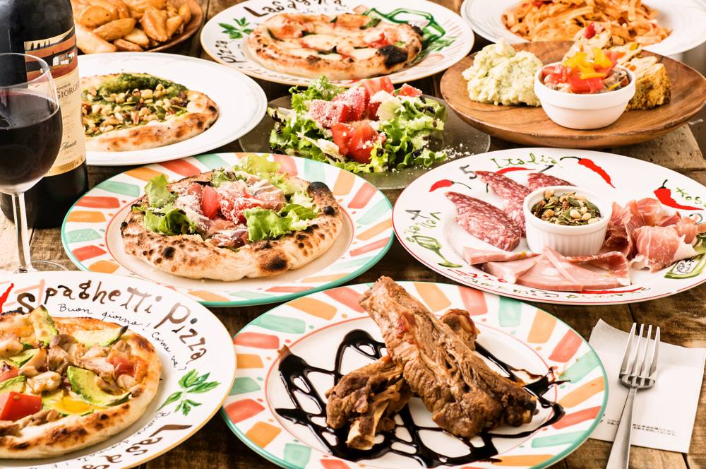 コース内容=サラダ、前菜、パスタ、ピッツァ、デザート【全5品】