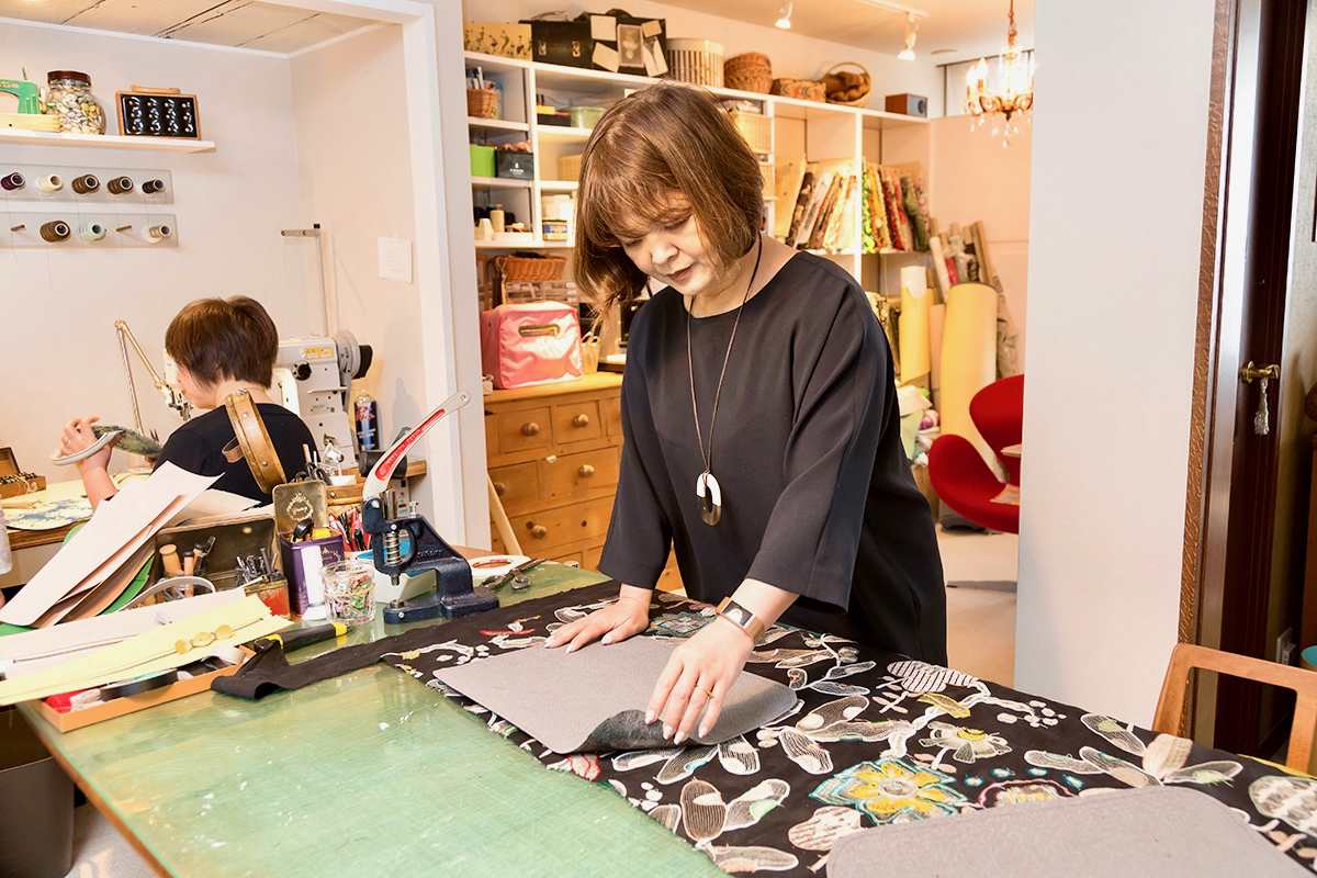 欧米、アジアで買い付けたシルクやインテリアファブリックなどの高級生地、ヴィンテージものの生地を ふんだんに使い、ディテールにこだわりぬいたバッグブランド。デザインは弓削珠緒が手がけ、大阪のアトリエで1点1点、職人の手によってていねいに作られています。生地の素材感や色柄を生かしたシンプルなデザインは、カジュアルなファッションから着物スタイルまでコーディネートしやすいのも人気の秘密。今後は、他にないバッグを求める顧客のニーズに応えてセミオーダーの受注にも力を入れていきます。