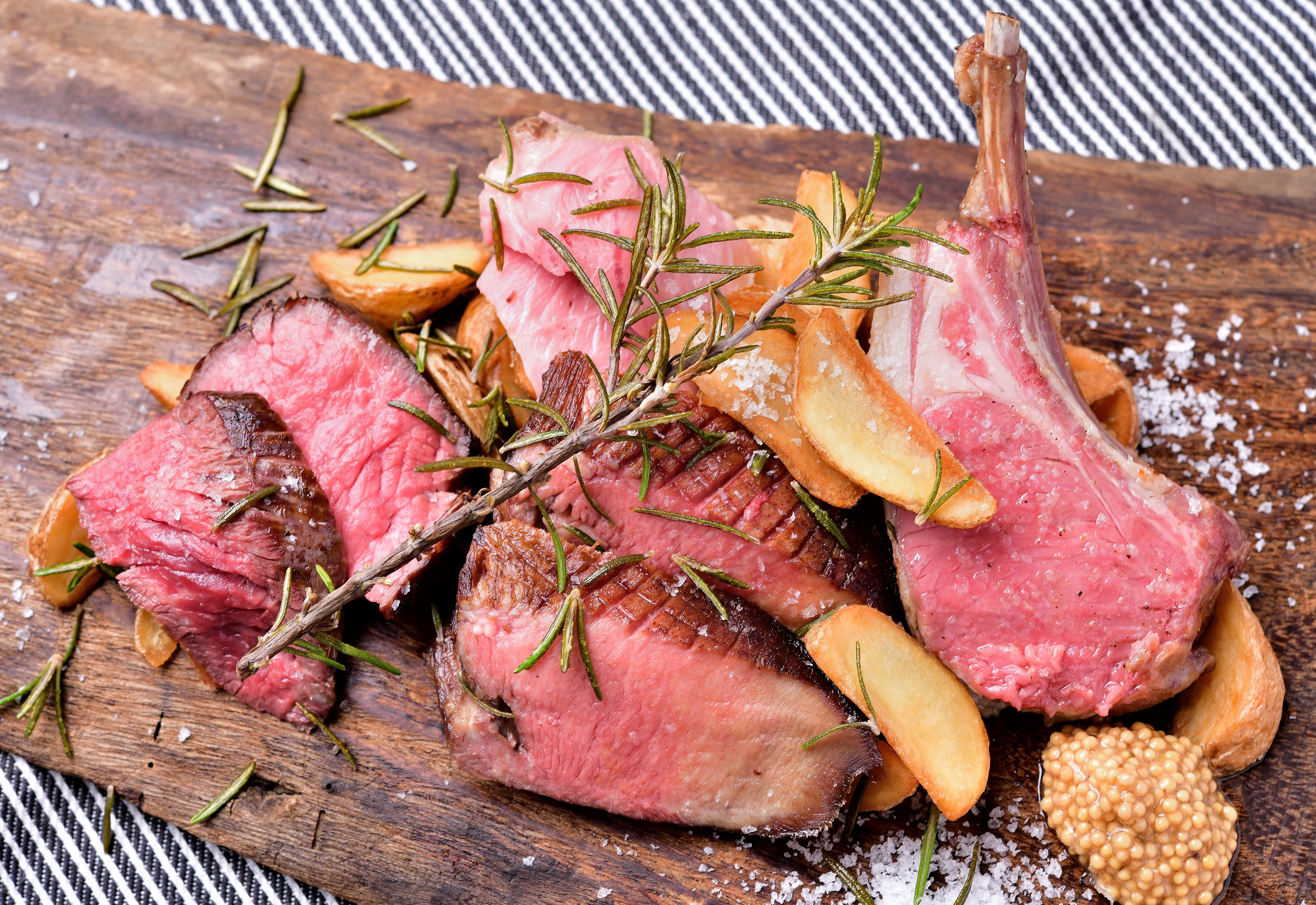 肉を種類ごとに1℃単位までこだわり、低温真空調理を施したお肉の盛り合わせ