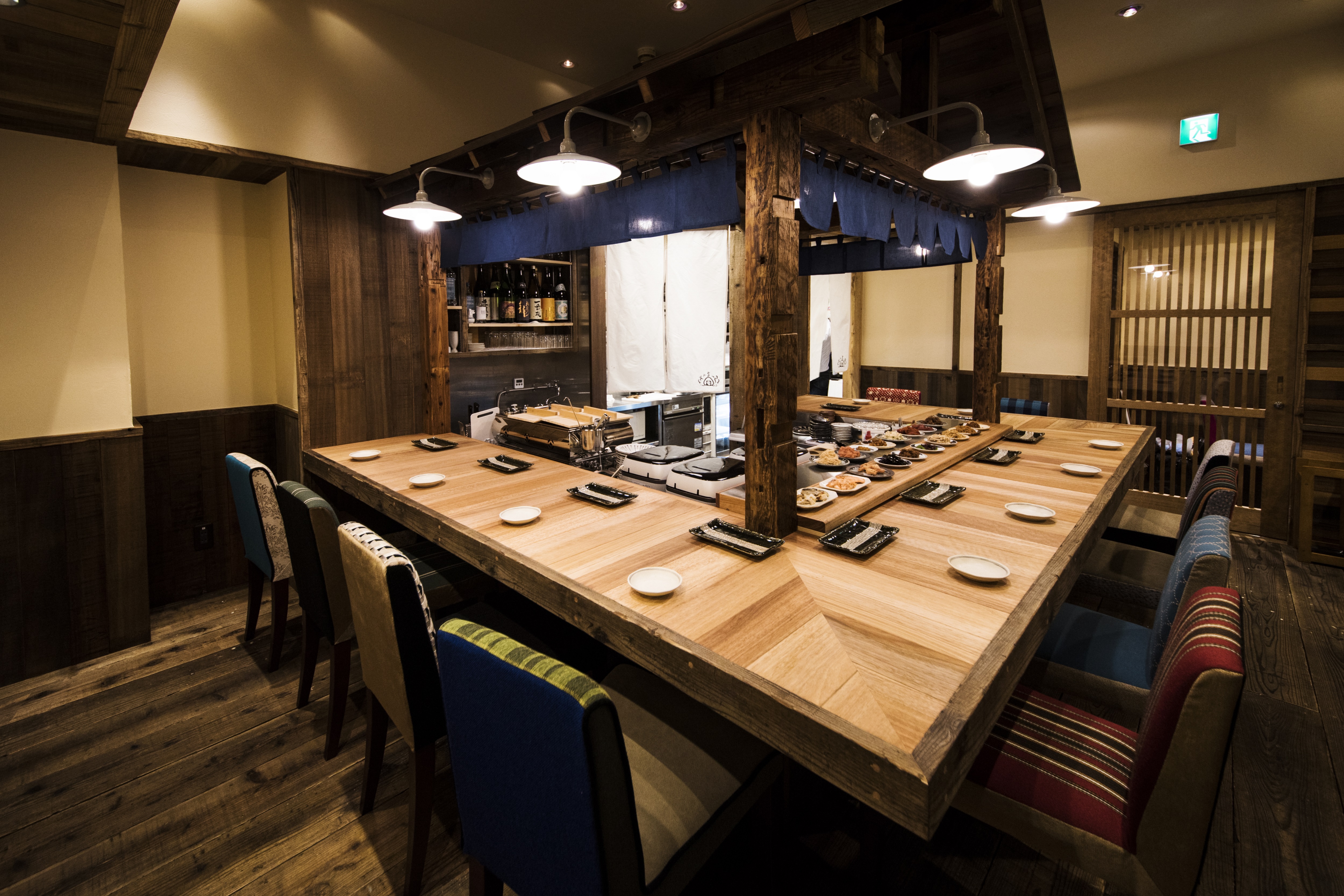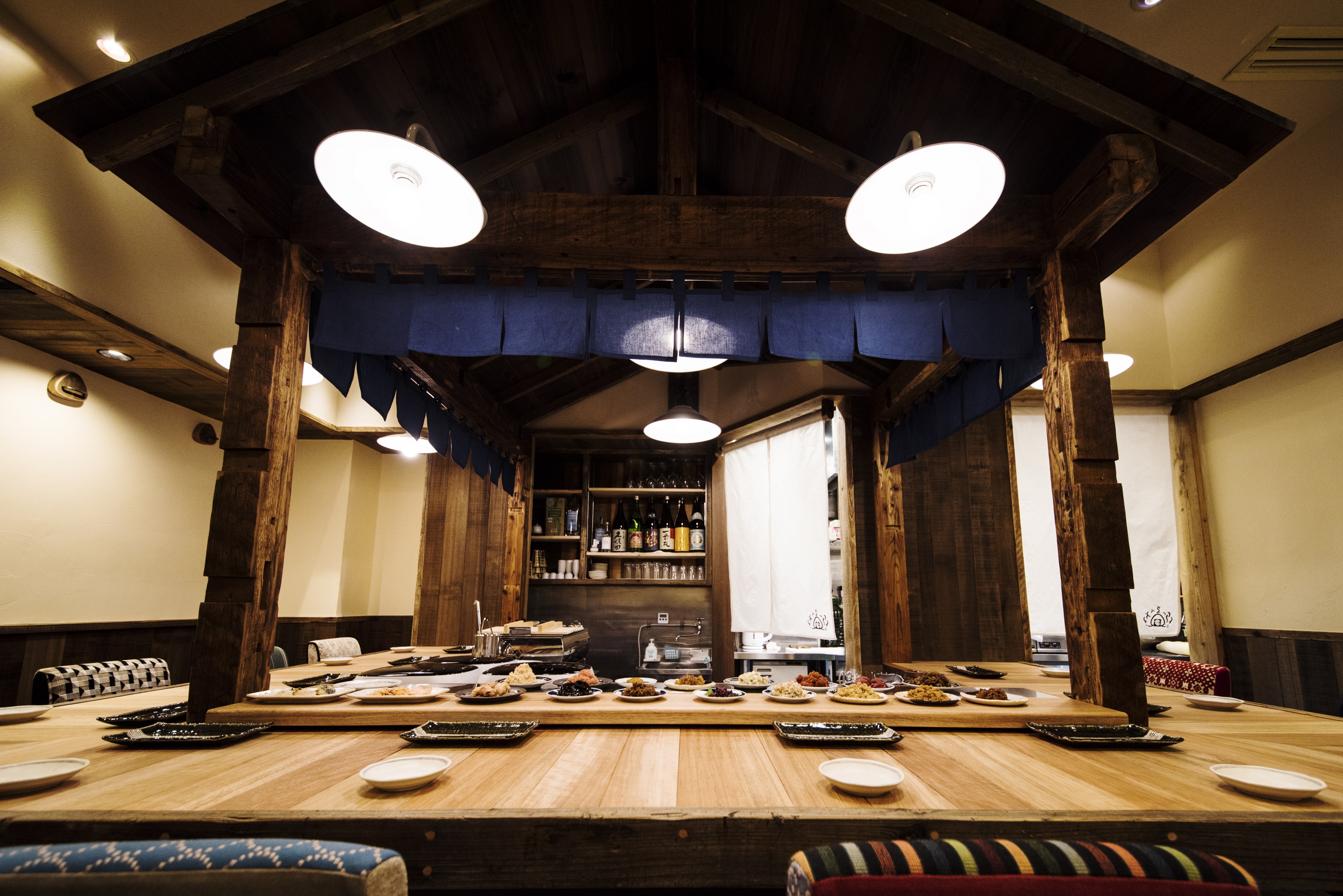 北新地という立地ながらも、気軽に店に足を運んでおにぎりを楽しんでもらいたいという思いから、店内には本格的な屋台を設けました。木質感のある内装で、落ち着きのある空間に仕上げております。座席はカウンター10席を設け、屋台中央にはおにぎりに使用する具材を陳列したショーケースも用意し、目の前でおにぎりを握る様子をお楽しみいただけます。