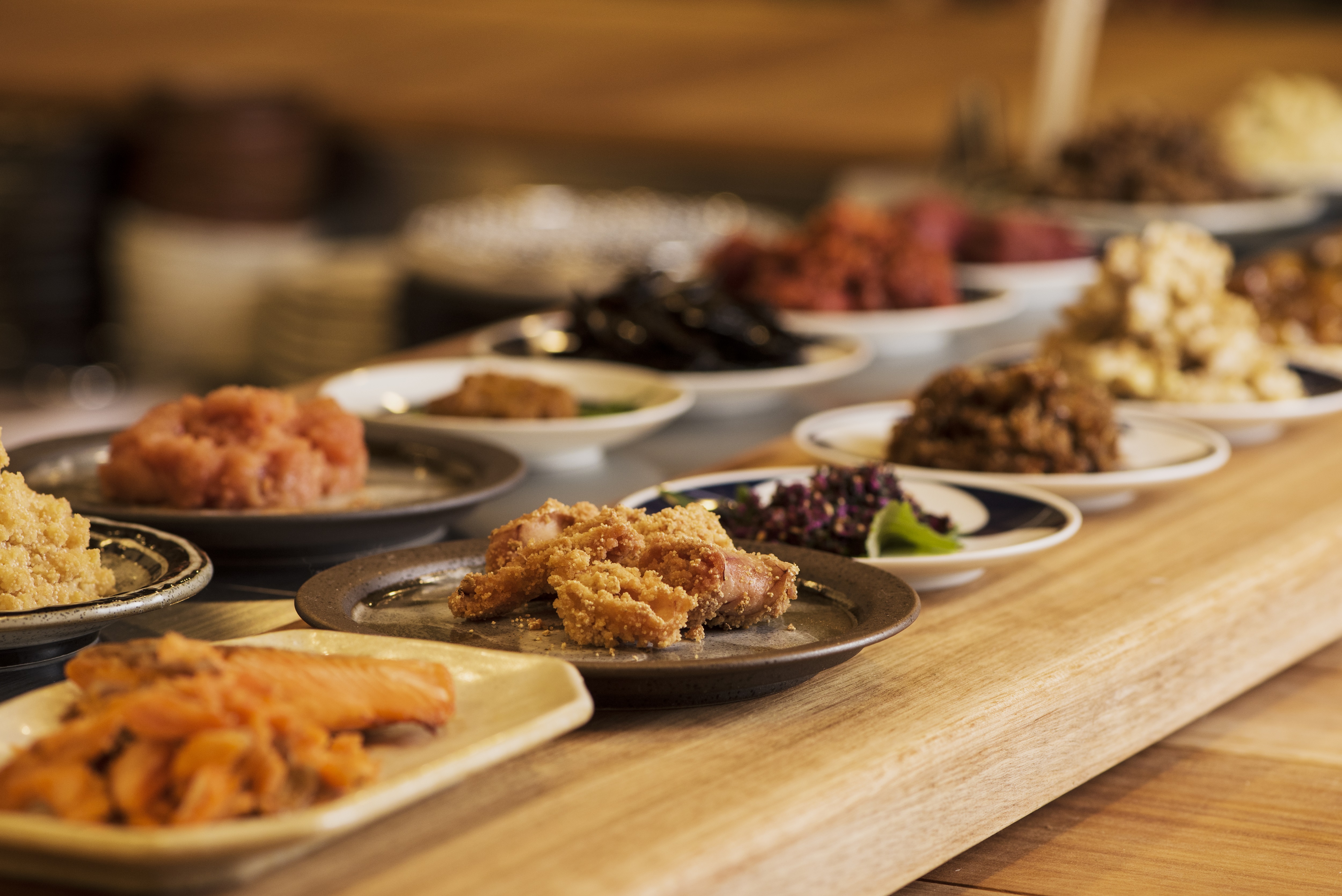 そのほか、だし巻きや鮭の塩焼きなどの一品料理、おでんなどのメニューも豊富にそろえております。ドリンクは日本酒を中心としたお酒など約30種類をご用意いたします。※価格は全て税抜です
