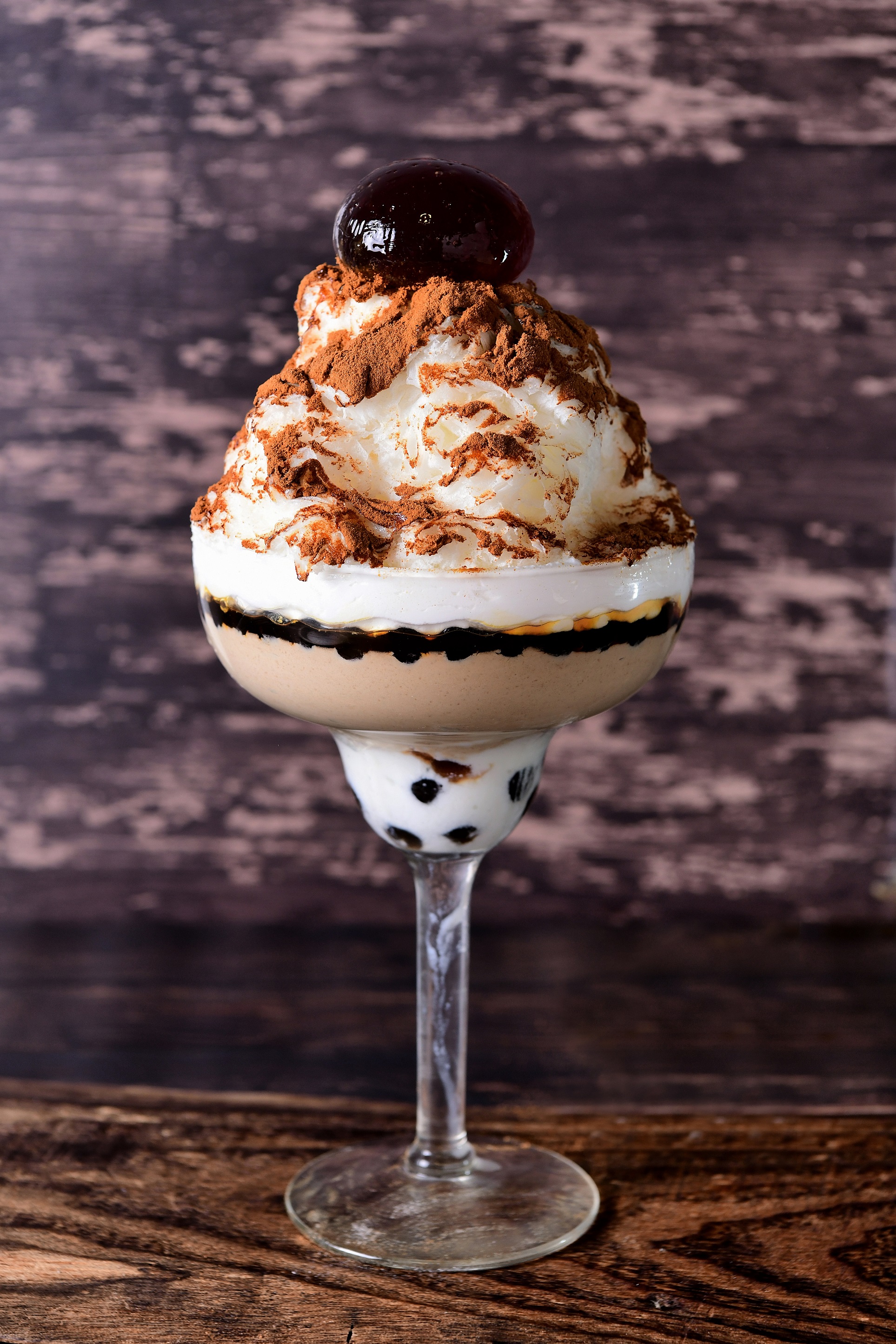 香り高いロイヤルミルクティーのスノーアイスにタピオカとレモンのムースをトッピング。