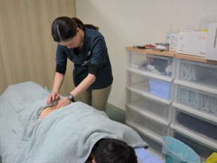 当施設では、脳梗塞後遺症リハビリの専門家である理学療法士が、カウンセリングで利用者の一人ひとりの悩みや目標に合わせた治療プログラムを立てて進めていきます。リハビリトレーニングは100種以上あり、スポンジやおはじきなどを使って指の感覚を取り戻すものから、足の動きを改善させる最新の電気刺激装置「アイビス」を使ったプログラムなど、多岐にわたります。また、鍼灸院も併設しており、はり・きゅう師による治療も併せて受けることもできます。完全にマンツーマンのプログラムとなっており、1回の来所は2時間30分。これは、介護保険での訪問リハビリの約3倍、医療保険での病院外来リハの約6倍です。また、自宅でもできる「課題シート」をお渡し、次回来所時に達成度を確かめることでスムーズなステップアップを目指し ます。プランは1カ月15万円~と、保険内サービスより高額ですが、改善が見られな かった場合は当施設が責任もって返金をさせていただきます。