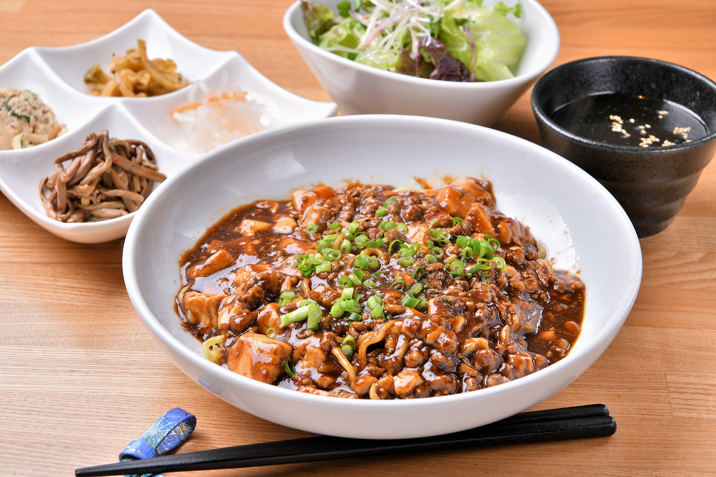 もちもち食感の焼きそば麺に、花山椒が香る自家製の四川麻婆豆腐をかけたあんかけ焼きそば。痺れ度合いは、4つのレベルをご用意しております。