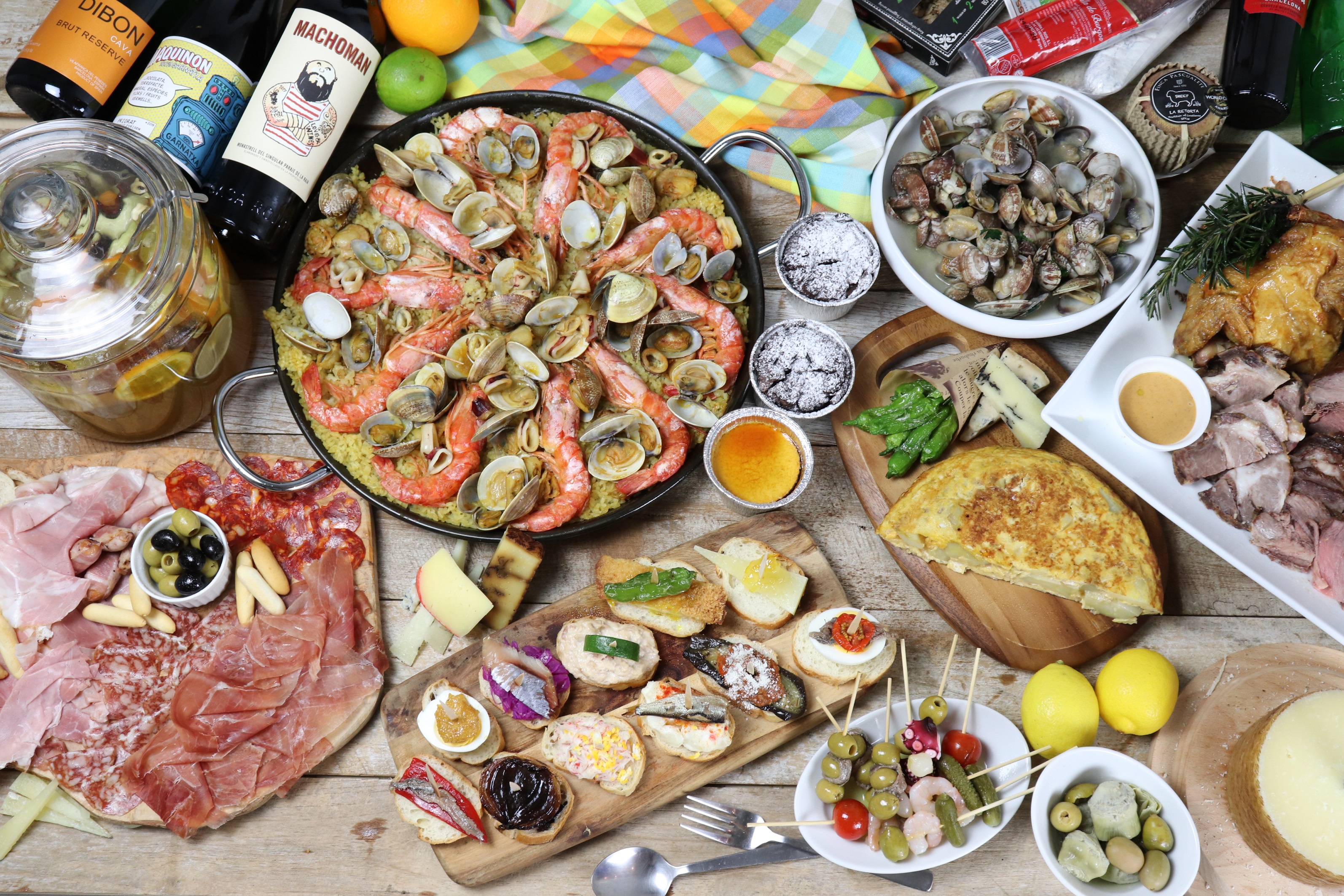 ■「パエリア」「ピッツァ」「ハム&チーズ」「タパス&ピンチョス」「ローストミート」の5エリアで本格料理を展開