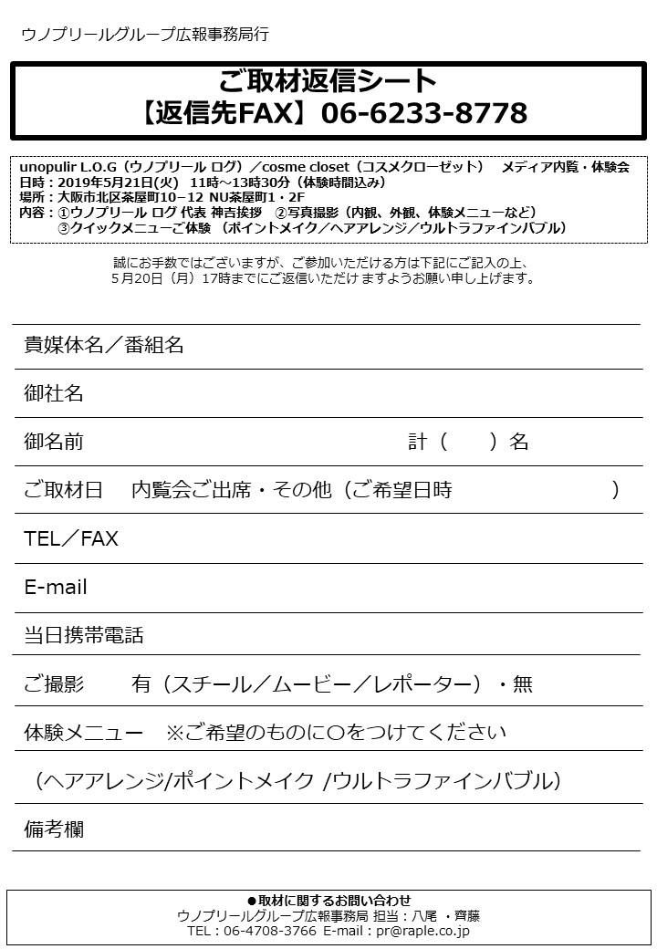 関西を中心に東京、NY、中国にグループ50店舗以上を展開するウノプリールグループ(住所:大阪市都島区東野田町2-2-10 2F、代表:伊勢地 亮)は5月21日、大阪・梅田のNU茶屋町に2階建ての新店舗「unopulir L.O.G(ウノプリール ログ)/ cosme closet(コスメクローゼット)」をオープンいたします。