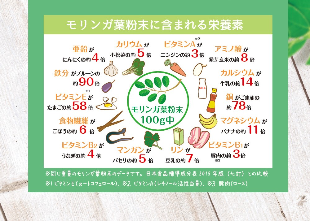 ※同じ重量のモリンガ葉粉末のデータです。