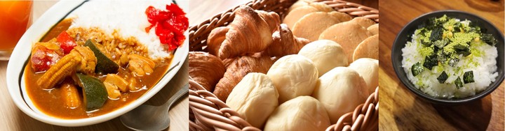 食べ放題!焼き立てパン・野菜ごろごろ朝カレー・お茶漬けの朝食付き