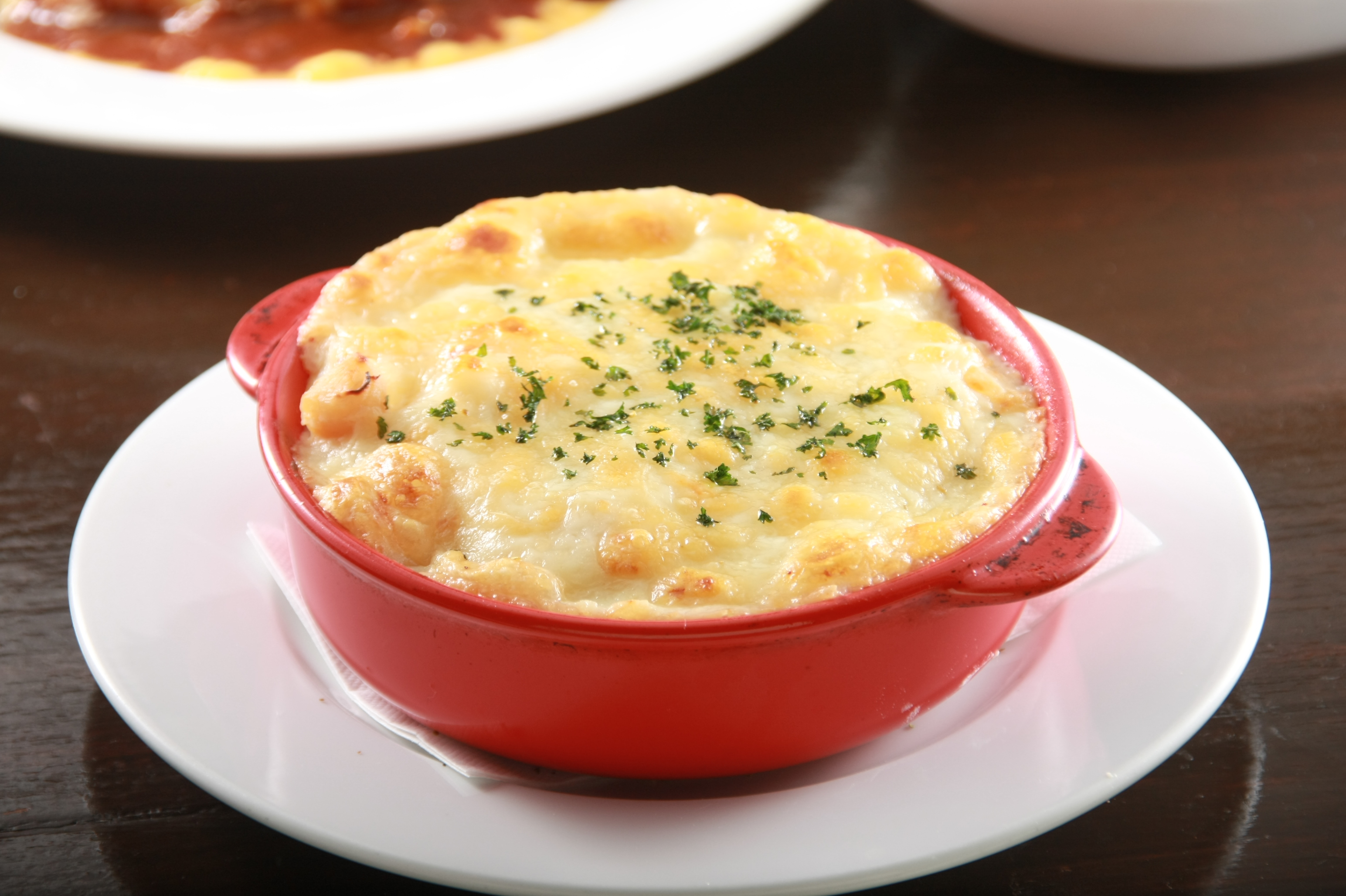 【ホタテマカロニドリア】(1070円) 「尾西の白がゆ」に温めた牛乳を加えてドリアにアレンジしています