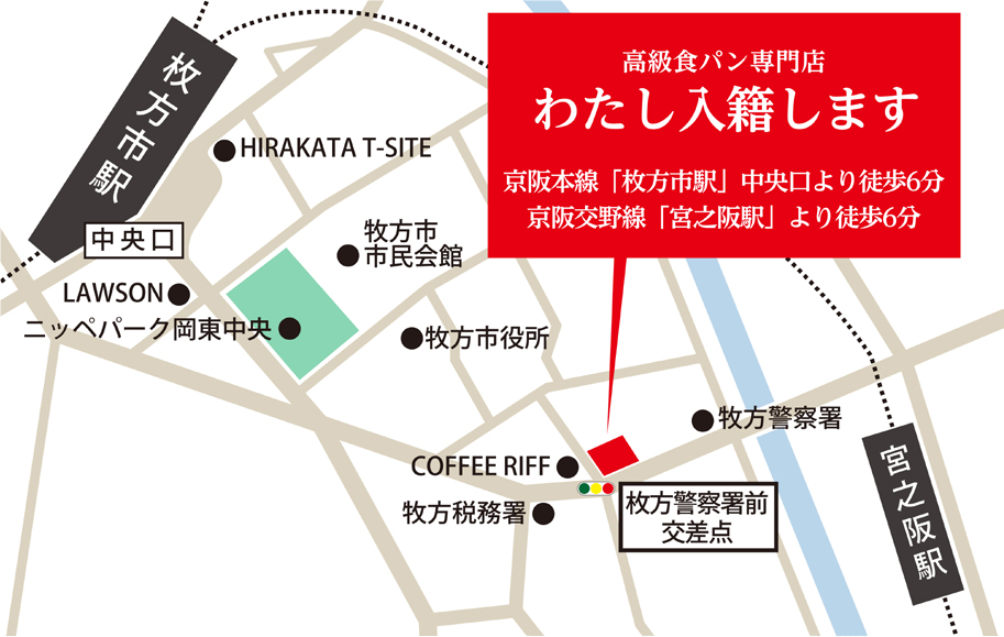 今後の多店舗展開も見据え、数多くの食パン専門店を大ヒットに導いてる実績を持つジャパンベーカリーマーケティング株式会社にプロデュースを依頼。食パンと結婚したくなる(=毎日食べたくなる)、そんな食パンを作って皆さまに届けたいという思いが詰まった、インパクトのあるコンセプトとネーミングで、地域の方々やスタッフとの絆を大切に、美味しい食パンと共に地域の方に愛される高級食パン専門店を目指します。最寄の枚方市駅は、大阪と京都を結ぶ枚方市の中心市街地であり、京阪沿線屈指の利用者数(90,000人/日)を有します。駅周辺の再整備による更なる昼間人口の増加が見込まれている枚方市駅の利用者や周辺住民をターゲットとして、ローズソルトなどの素材にこだわった2斤サイズの食パン2種のみで展開いたします。