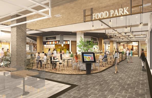 木目を基調とした落ち着きのある内装を施した「Food Park」には、新鮮で高品質な生鮮三品やスイーツ、お惣菜などの食物販専門店ほか、約240席からなるフードコートなど、バラエティ豊かなグルメゾーンが誕生します。