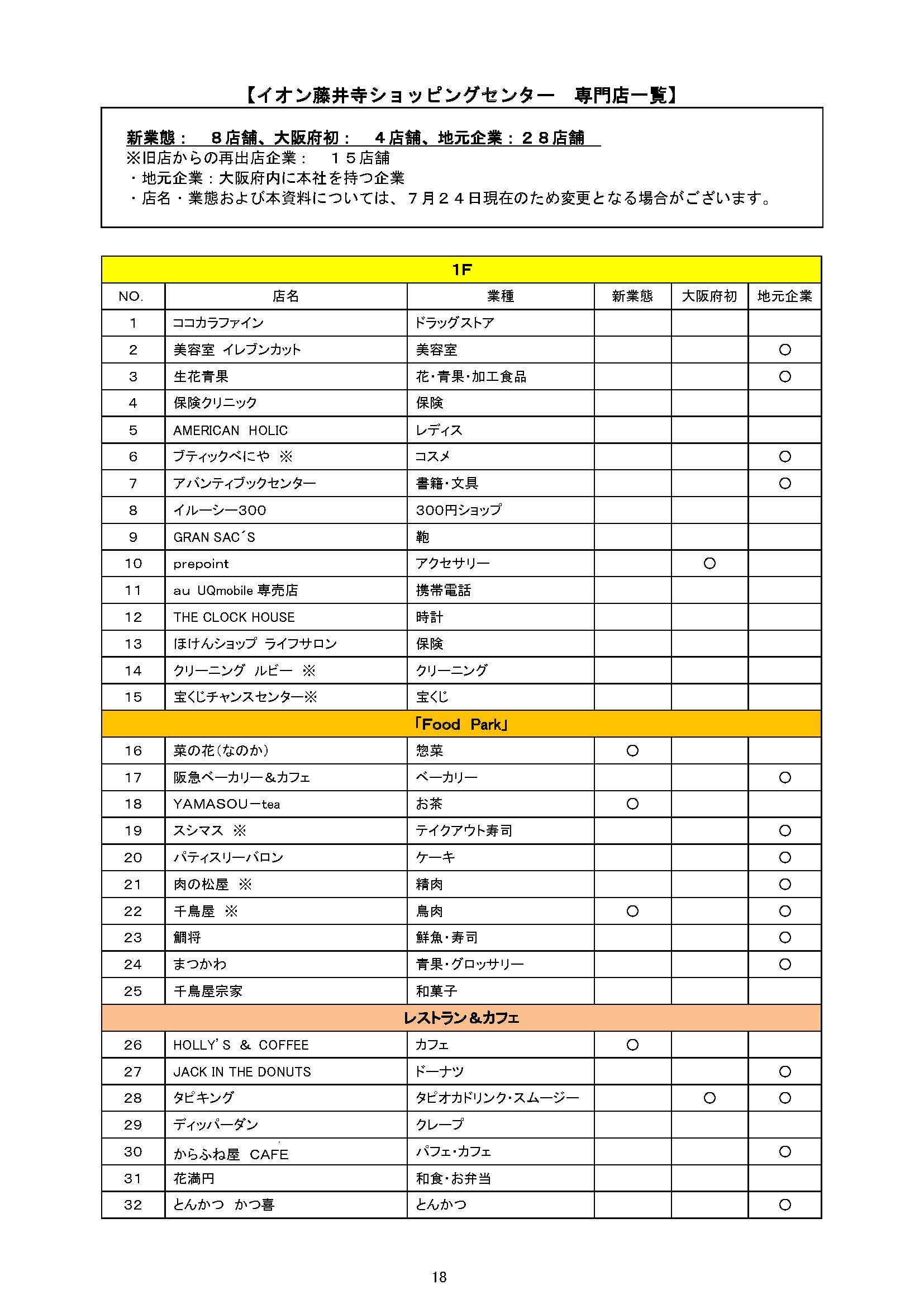 ・出店店舗数 : 核店舗 イオンフードスタイル藤井寺店(仮称)