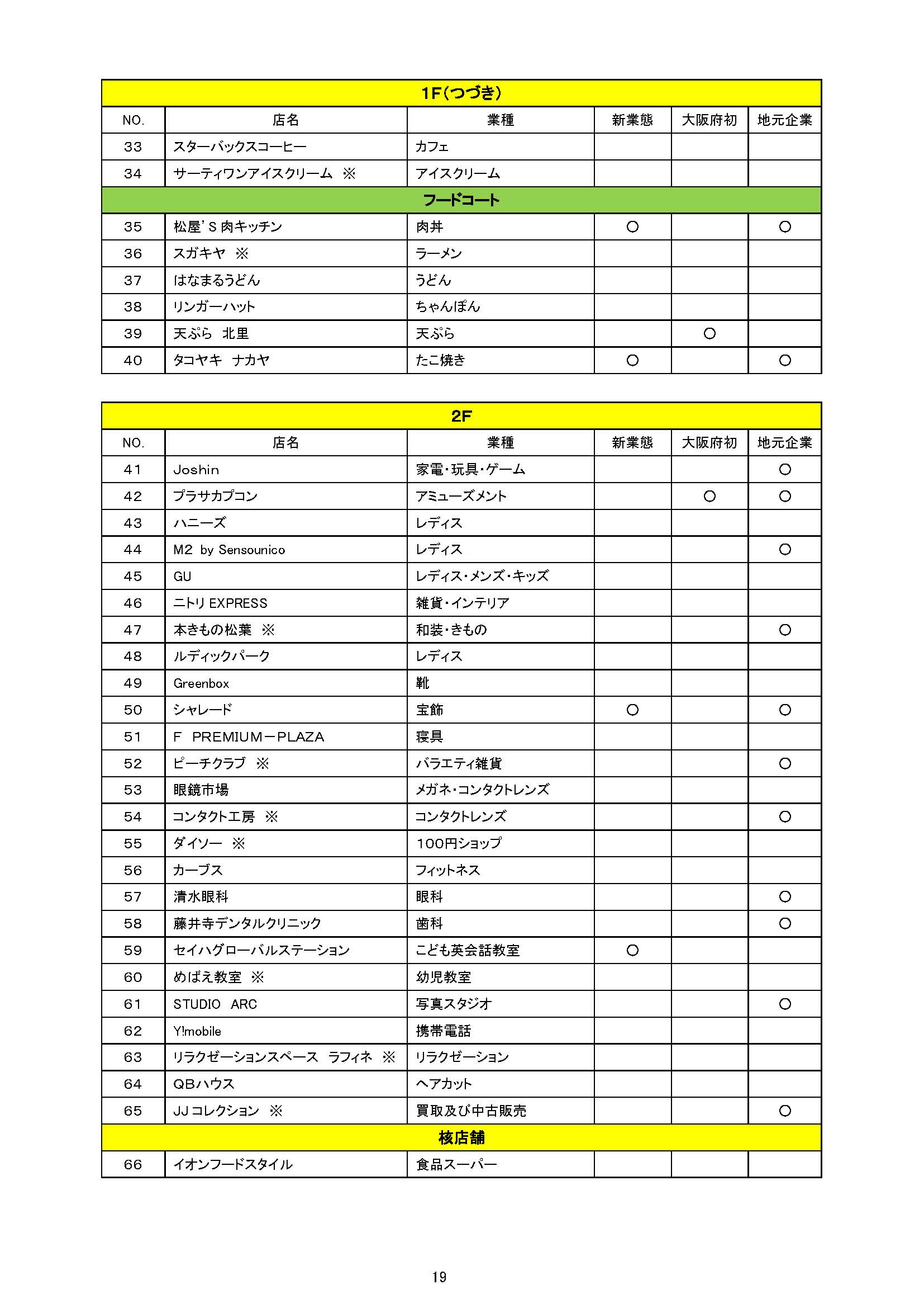 新業態、大阪府初を含む65の専門店