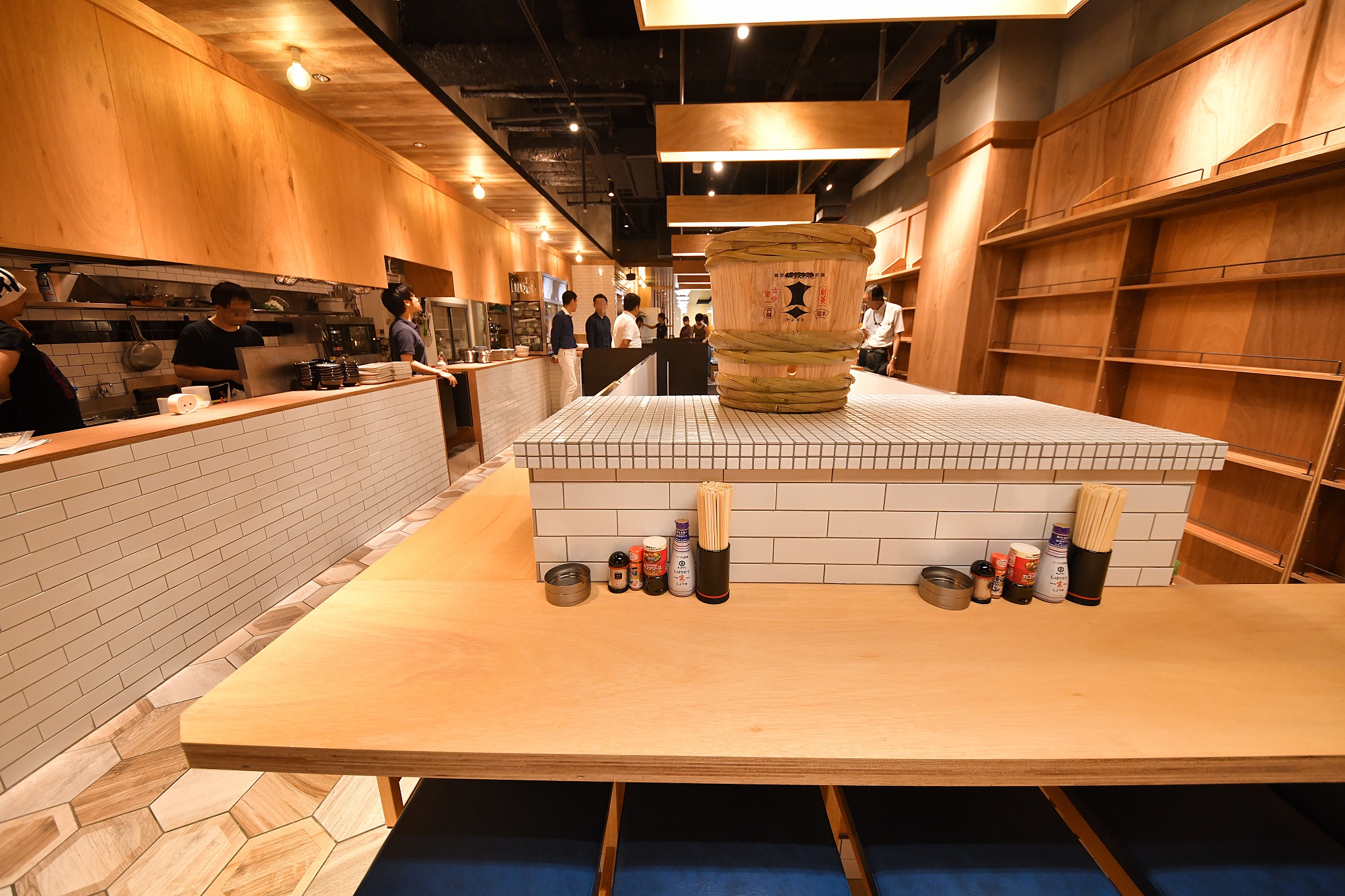 当店は「古き良き昭和の大衆酒場」をコンセプトに、1フロアで梅田エリア最大級の席数を誇る大衆酒場です。入口に掲げる暖簾をくぐった先には、長さ31メートルの店内が広がり、コの字型カウンター席やテーブル席のほか、座敷席など全145席を設けた大箱店です。店舗デザインは、酒場づくりの第一人者であるデザイナー・矢野寛明氏が手掛け、昭和を思わせる大衆酒場の店構えでありながらも、現代風でスタイリッシュな雰囲気を持ち合わせた「大衆酒場」をイメージし、女性やカップル、家族でも入りやすい店内に仕上げております。″懐かしさ“と″新しさ”を兼ね備えた当店では、近年一人で利用されるお客様も増えているため、43席あるカウンター席を「おひとり様優先シート」としてご利用いただきます。そのほか店内壁には、短冊メニューを貼るなどで大衆酒場の世界観も表現しております。