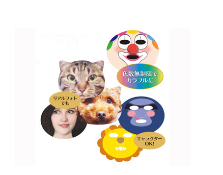 イベントでの配布や面白グッズとして大人気の、国産スパンレース不織布(汎用品)フェイスマスクを100枚からフルカラー印刷できます。専用フォームで注文手続き後、テンプレートに絵柄を流し込んでメールにてお送りください。 詳細はこちらからどうぞ https://principalnet.jimdo.com/