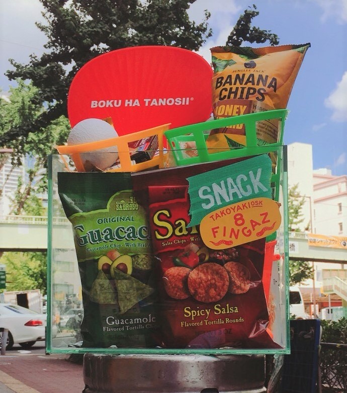 「大人の駄菓子屋」をコンセプトに、海外で有名な駄菓子(100円~)を取り揃え、鉄板焼きは、約30年腕を磨いた68歳の田島が主に調理を担当します。大人の駄菓子は、「LOACKER CHOCOLATE」(300円)「SALSITAS CHIPS」(500円)、「HARIBO」(100円)などを用意します。