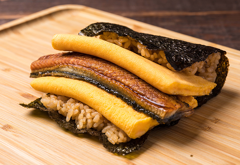 「【プレミアム】うなぎの蒲焼バーガー」は、そんな栄養満点のうなぎを自家製の秘伝ダレに漬け込んで、かば焼きにし、ふわふわのだし巻き卵とごはんで包み込みました。脂の乗ったうなぎの味わいと、だし巻き卵のやさしい味わいが絶妙にマッチし、仕上げに塗した山椒がアクセントになります。