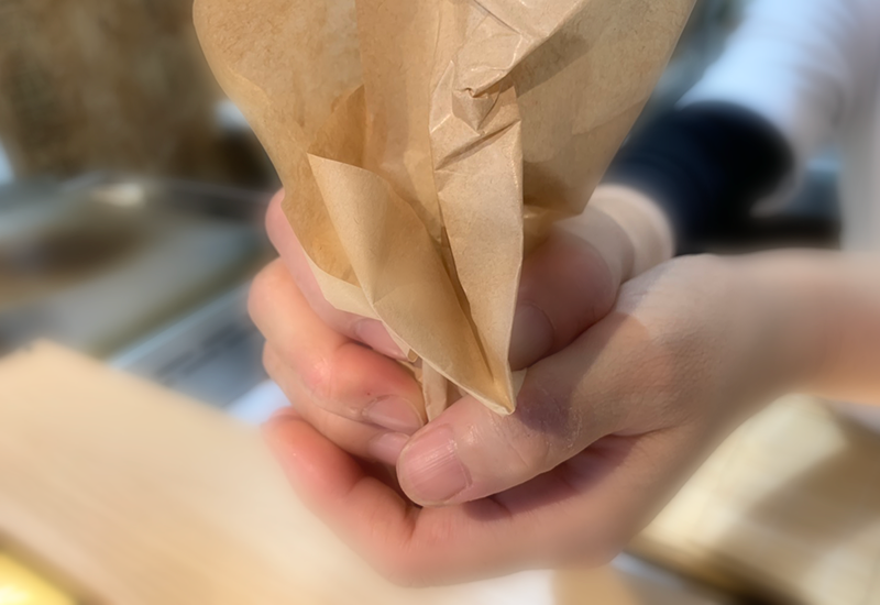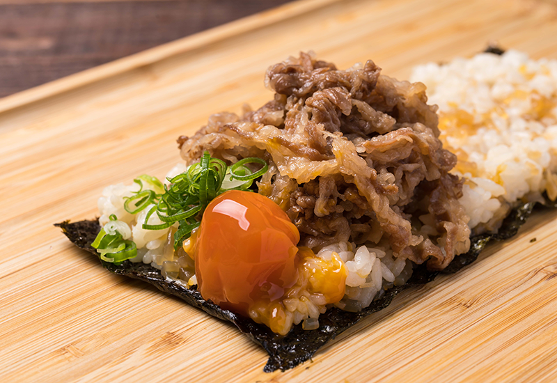 本メニューは「すき焼き」を体現しているため、柔らかく、途中食べに食べ悪くなった場合は、付属の紙包みで、おにぎりの様にぎゅっと包み込むことで、手が汚れることもなく、特性ダレや卵黄の旨みが、お米や具材の細部にまで染み渡り、より極上な味わいをお楽しみ頂けます。