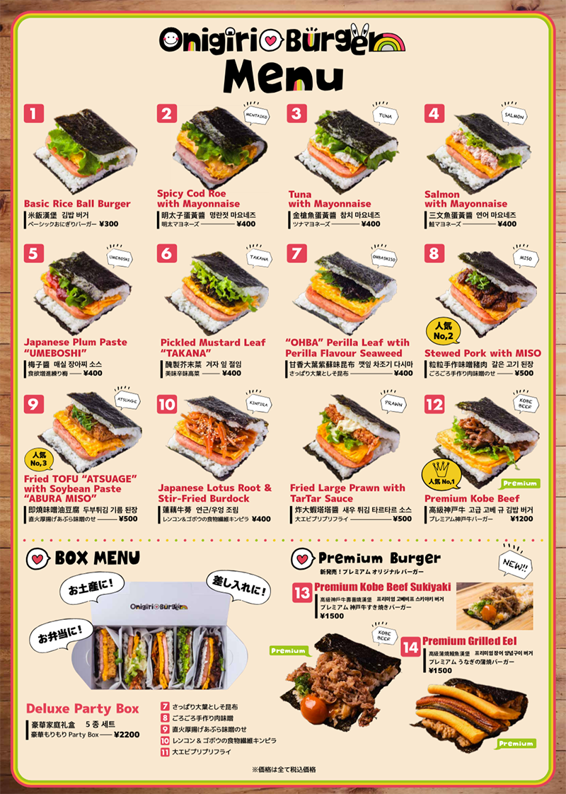 シュークリームのテイクアウト専門店のパイオニア「ビアードパパ」の仕掛け人・吉川靖師が日本のソウルフード「おにぎり」を世界へ発信したいと、ハワイのファーストフード「スパムおむすび」からヒントを得て考案。「MAKE FOR YOU」をコンセプトに、注文を受けてから握り、ホカホカの出来たてをご提供します。