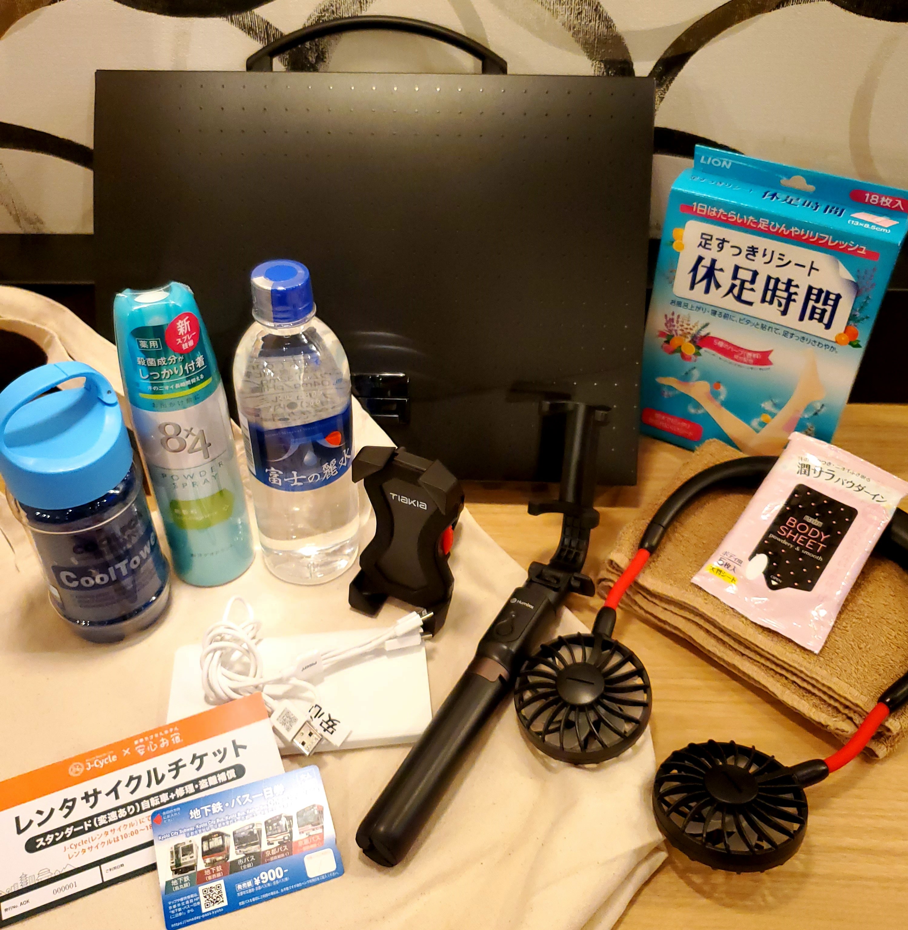 オリジナル巡礼マップ配布/首掛けハンディ扇風機/三脚にもなる自撮り棒/制汗シート
