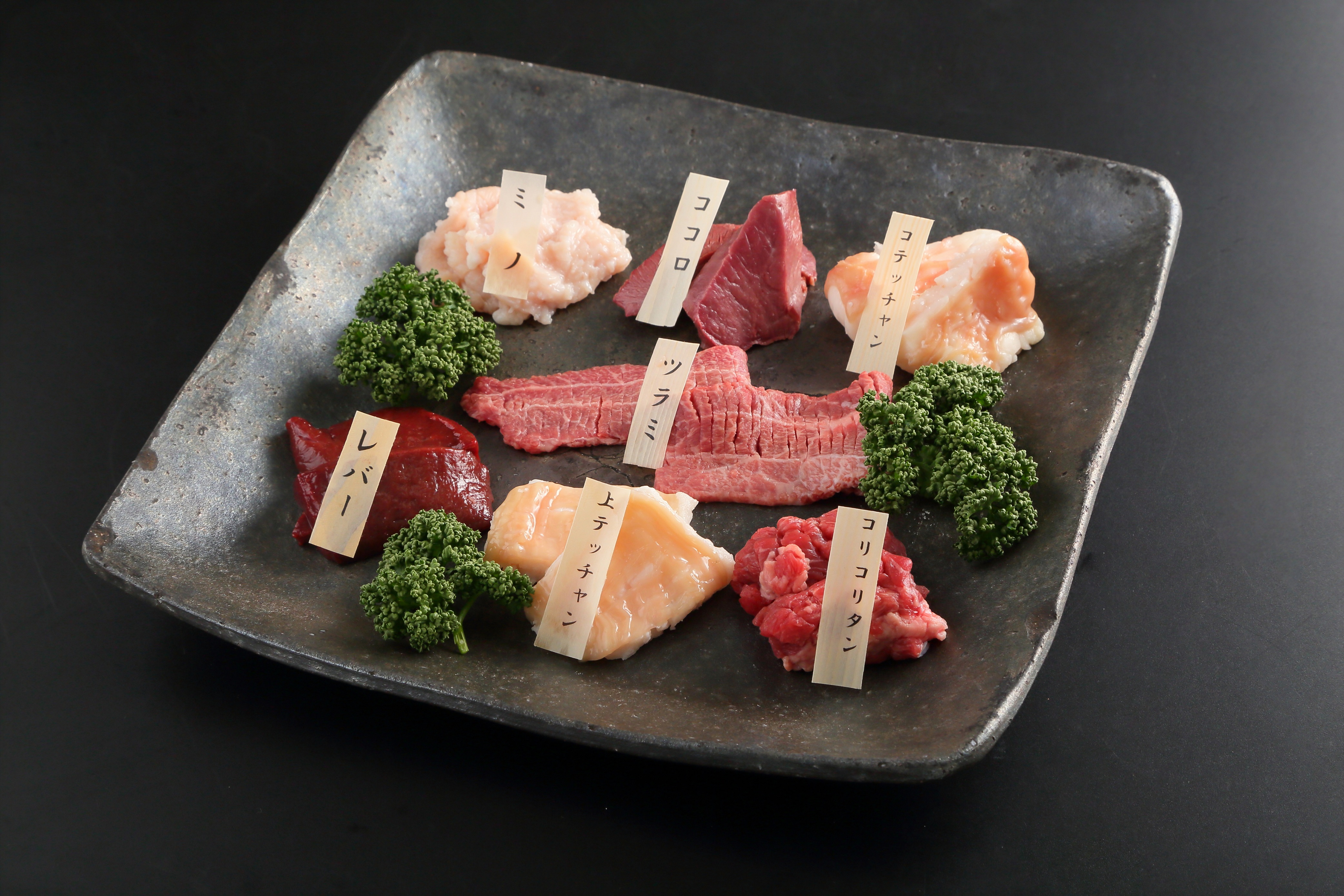 「高級店でも、オシャレな店でもなくていい。ただうまい肉をがむしゃらに食いたい」そういう肉好きな方にとってまさに聖地のような場所を用意しました。赤身肉は精肉問屋が唸る黒毛和牛で、生産者や血統を重視し、日齢900日以上の長期肥育期間を獲た未経産の雌牛をご提供。ホルモンは国産のみを使い、屠畜されてからの時間を厳格に選別し、それぞれの料理に合った隠し包丁で極上の味に仕上げます。焼肉屋のメニュー数は平均80品と言われる中、赤身肉・ホルモン・一品・〆含めて30品以内に抑えました(ドリンクを除く)。