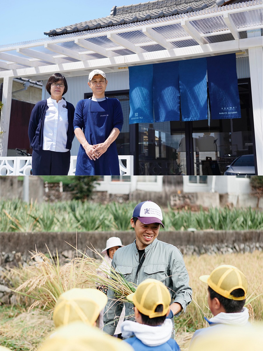 鳴門市出身。大手アパレル勤務時に職場結婚した福島県出身の弘之さんとイタリアに渡り、現地企業で企画開発や服飾デザインに携わる。'17年地域おこし協力隊員として美馬市に移住、'19年4月鳴門市に『STUDIO N2』を設立。高機能な藍染のスポーツウエアを製造販売する。