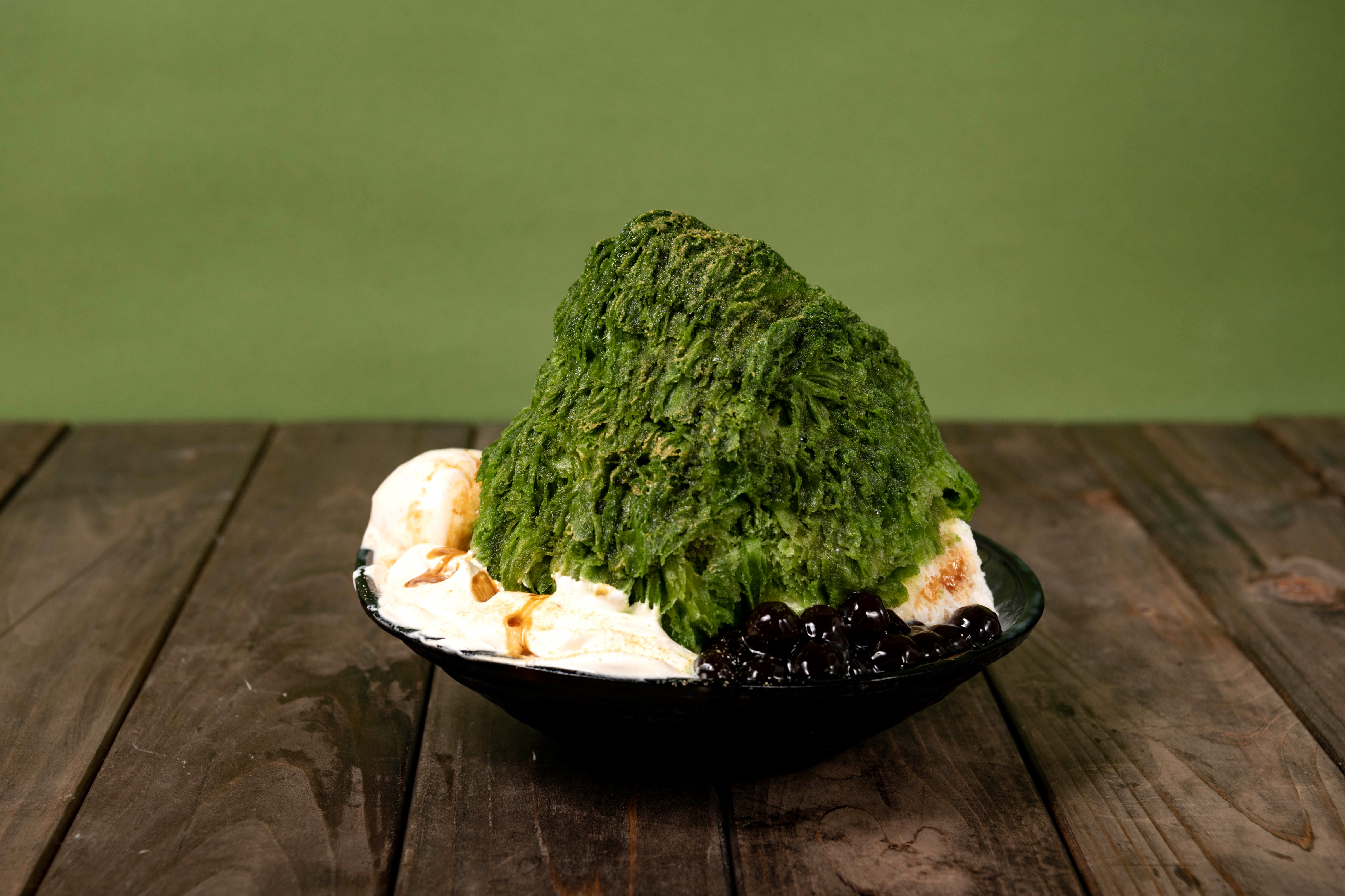 ミルクのフレーバーアイスブロックの上から辻利一本店の濃く深い本格抹茶を使用した抹茶のフレーバーアイスブロックを削ったかき氷に、クリームチーズにブラウンシュガーを合わせた「ブラウンシュガーチーズフォーム」をふわっとたっぷりトッピングした和風かき氷です。サイドには黒蜜きなこアイスとブラウンシュガータピオカを添え、お好みで自家製黒蜜かけてお召し上がりください。