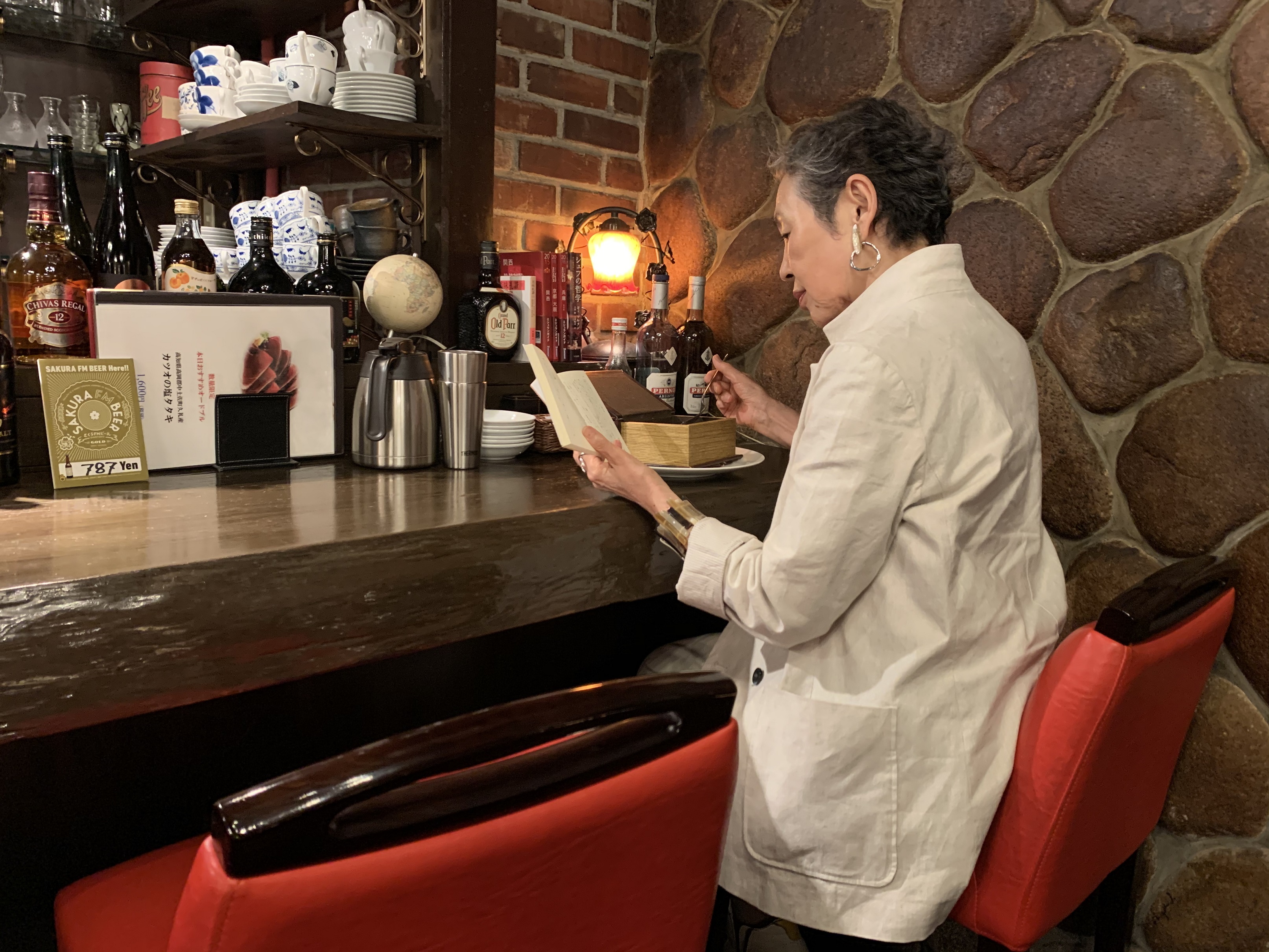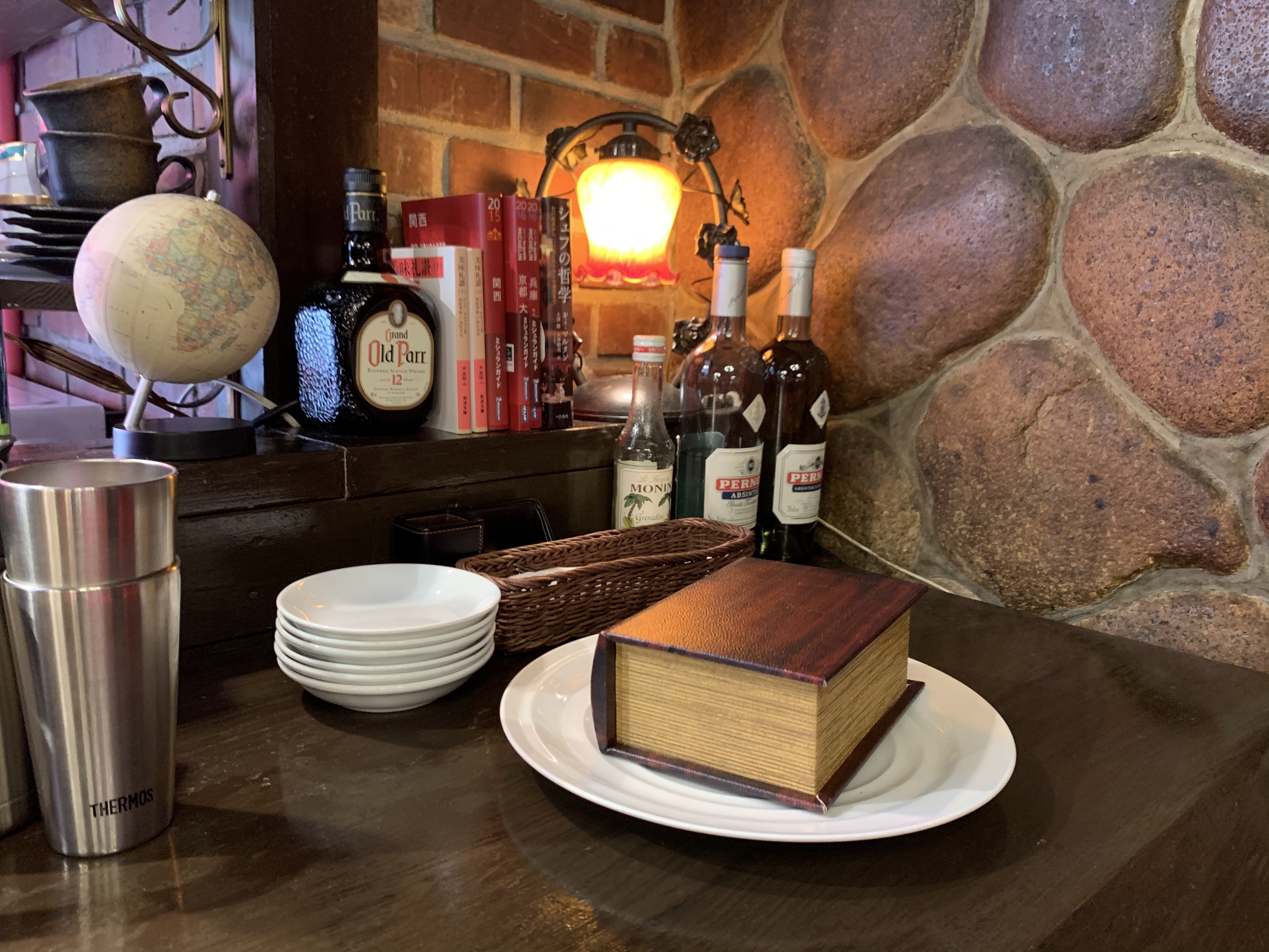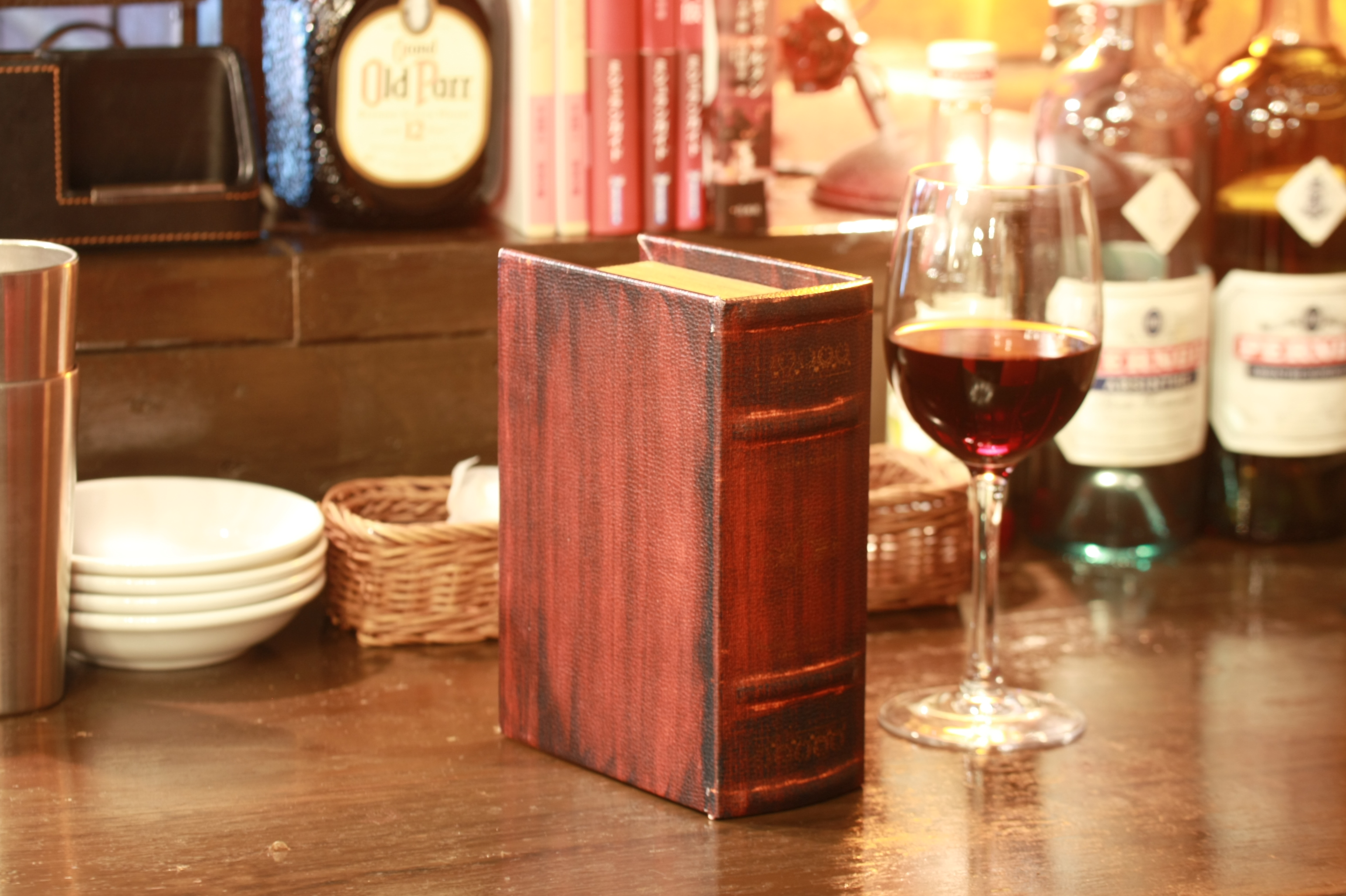 薄明かりに照らされたカウンター奥の指定席で、文豪気分で落ち着いて食事と読書を同時にお楽しみいただけます。文庫本に限り持参の本を2冊まで「ブックキープ」することもできるため、通勤・通学中に重たい思いをして本を運ばずにすみます。この席の利用者は誰かのキープ本を読むこともできます。