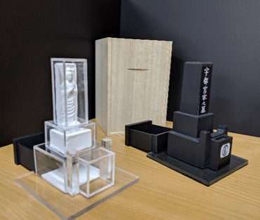 大阪在住の弊社代表宇都宮の墓は愛媛県松山市にありますが、遠方であることや諸事情で20年以上行けておらず、年に数回、妹が掃除とお参りに行ってくれています。一昨年の秋、ふとご先祖様や父親、妹に申し訳ないという気持ちになり、「せめて存在だけでも忘れないように」と小さなお墓を3Dプリンターで制作したのが「はこはか」のはじまりです。試作品を見た周囲の人から「私も欲しい」との声もあり、小さなお墓の需要があると知り、約1年の試行錯誤の末、手のひらサイズの小さな墓「はこはか」が完成しました。