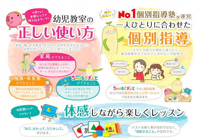 幼児教室は万能ではない。ご家庭や園などとの役割分担を前提に、幼児教室に通う意味があるように正しく幼児教室を活用してもらうことをコンセプトとした「ちゃいるどぎふと幼児教育」のカリキュラムを開発し、開校に至りました。