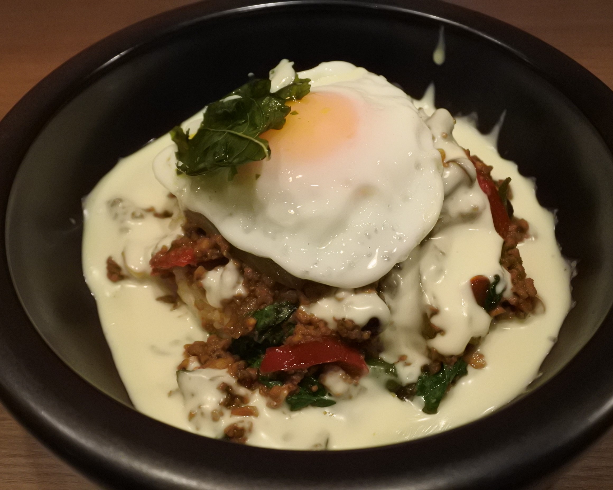 「麻婆ガパオ」はタイから輸入しているタイハーブや香辛料をたっぷり使った当店自慢のガパオと麻婆豆腐を融合。免疫力を高めるとされる唐辛子やコショウ、ニンニクなどが含まれピリ辛で食べやすく、ヘルシーなので女性の方におすすめです。麻婆の痺れる辛さは、別皿で提供する青唐辛子やナンプラーが入った激辛痺れソースで再現しました。「焼酔っ払い麺」(パッキーマオ)はタピオカ粉などを使用した薄くて幅広の生麺にシーフードを合わせた、つるつるもっちりした食感が独特の麺料理です。タイのショウガ”クラチャイ”を使っているので、食べ進むほどに体がポカポカと温まります。現地ではポピュラーなメニューですが、日本ではまだ珍しいです。「酔っぱらった人も目が覚めるほど辛い」という由来の通り現地では激辛ですが、より食べやすい辛さにアレンジしており、辛さを求める方には別添えのソースで調節いただきます。人気のチーズを使った新メニューもご用意。「チーズガパオ」は、ガパオライスをアツアツに熱した石鍋に盛り付け、上からご自身でチーズ(別皿に100cc用意)をふんだんにかけ、半熟目玉焼きと一緒にかき混ぜていただきます。ピリ辛スパイシーなガパオにまろやかさが加わった、リゾットのような新感覚のガパオライスです。「揚げバナナonチーズ」は、タイで定番のスイーツ揚げバナナにアツアツのチーズをふんだんにかけ、溶けたココナッツアイスと絡めながらいただくスタイルの新感覚スイーツです。チーズの中に含まれる乳酸菌は腸内環境を整えるとされ、体を内側から元気にしてくれます。