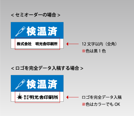 また会社名を表示できます。データ入稿であればロゴ入りもOK。