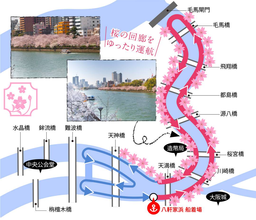 ◇発着場 : 八軒家浜船着場(天満橋駅徒歩1分)