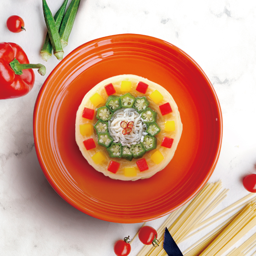 製造には、パスタ、ソース、デコレーションを数回の工程に分けて急速冷凍とデコレーションを繰り返しながら行うという、今までにない独自の方法を採用。実用新案登録済商品:特許庁登録325670号を得ている商品です。