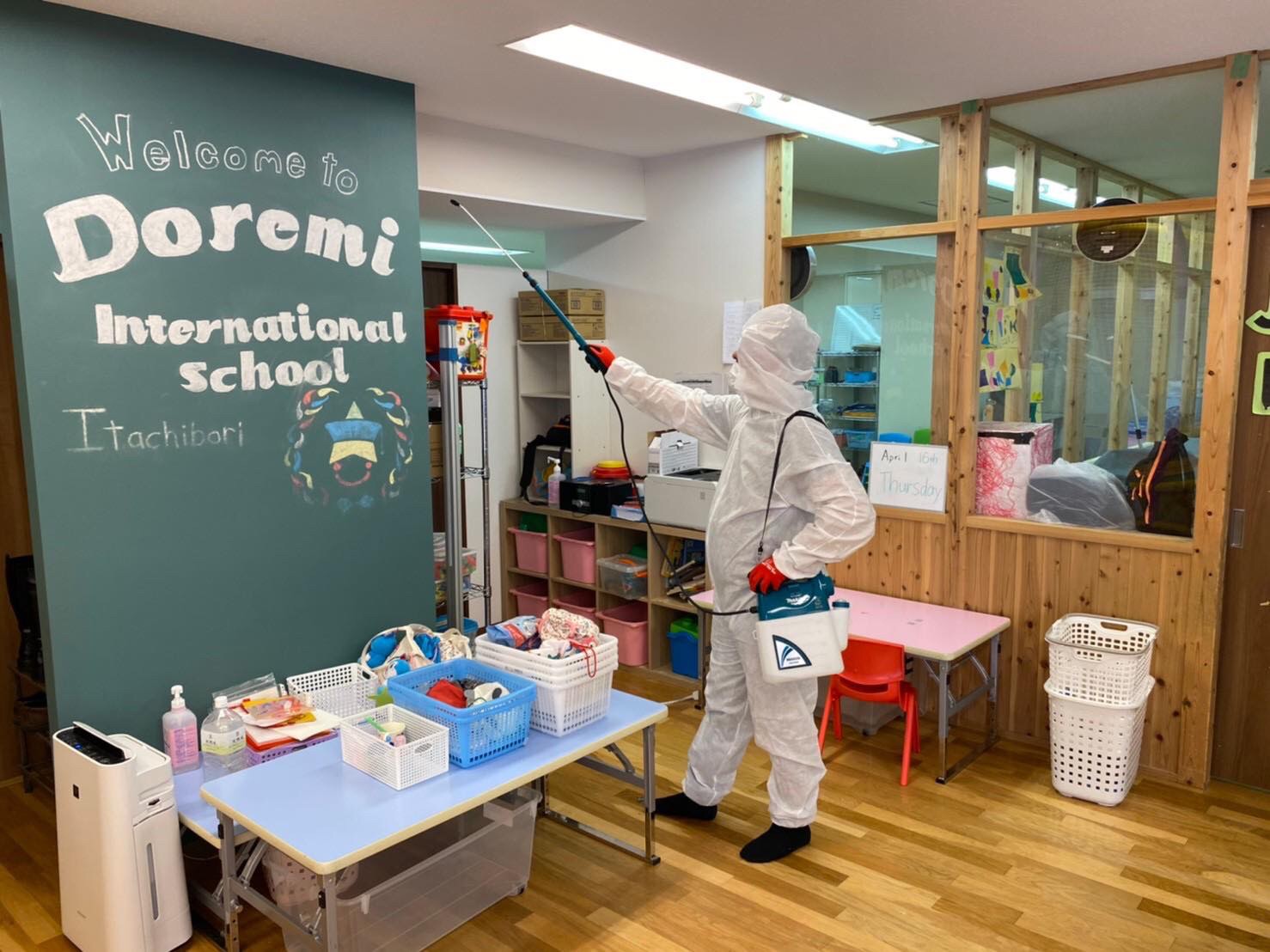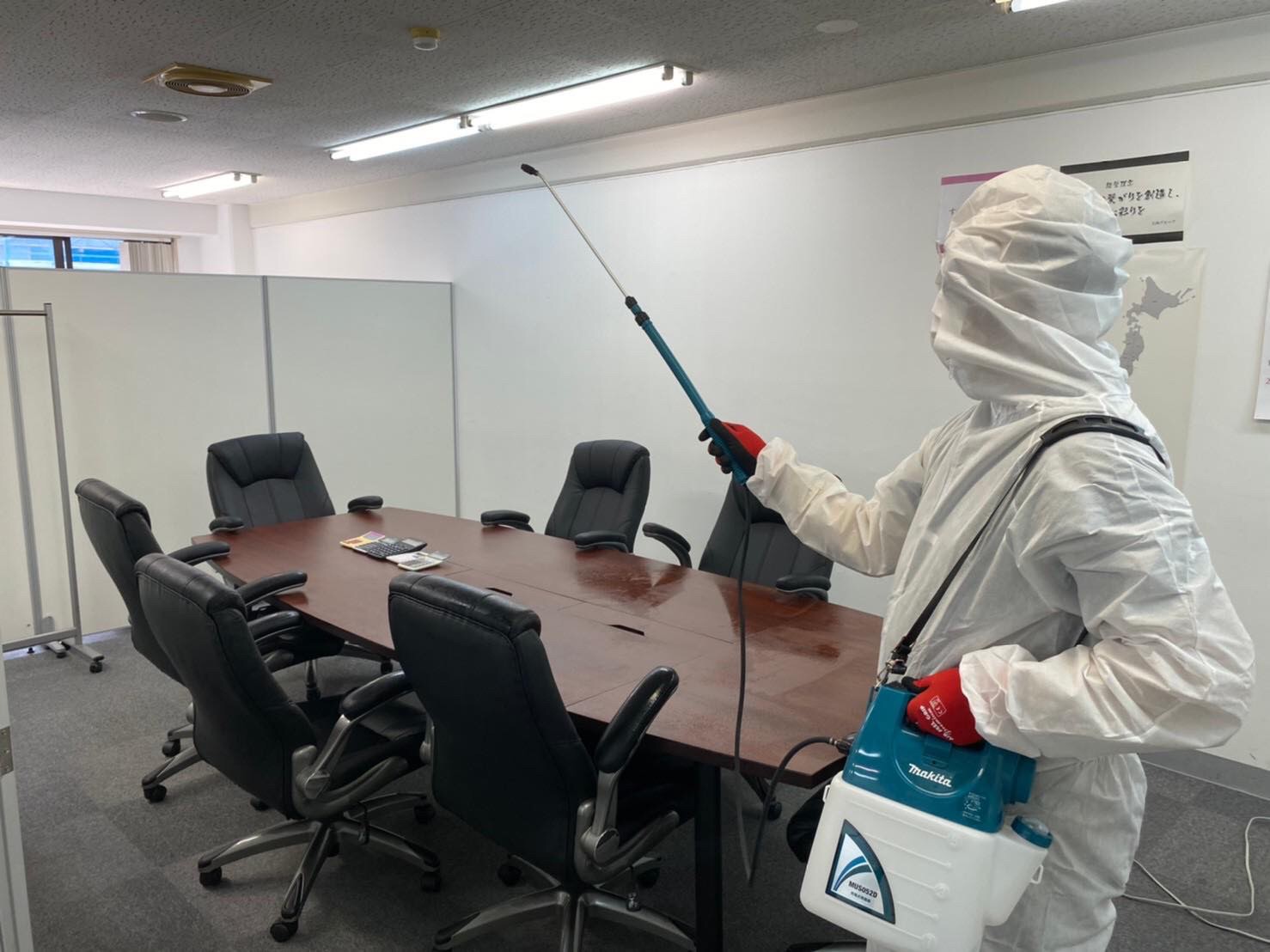 内容: 弱アルカリ性安定型次亜塩素酸ナトリウムを使用し、施設内部のふき取りや薬剤の噴射を行います