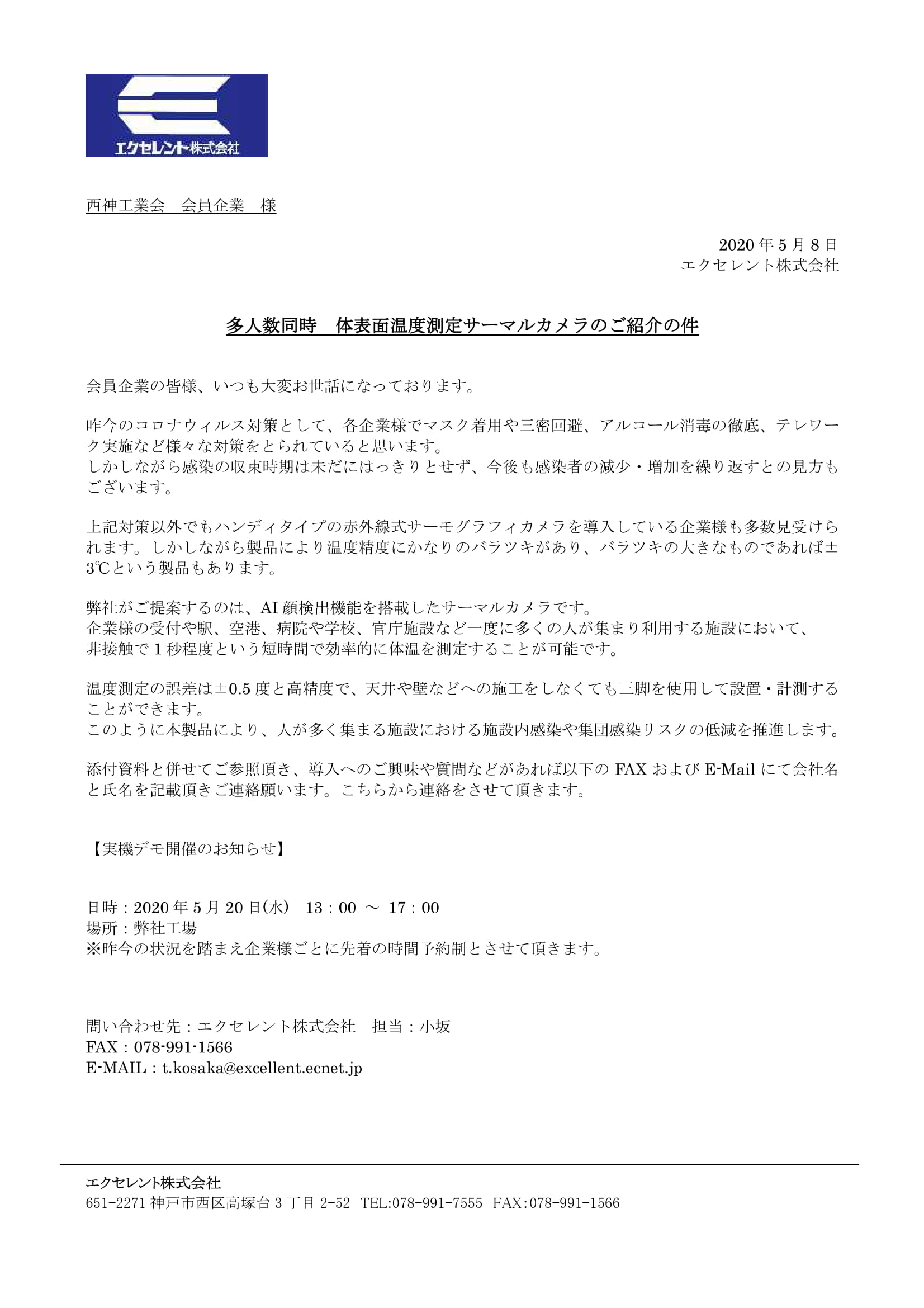 この度、5 月20 日(水)に弊社販売店 エクセレント株式会社(兵庫県神⼾市)にて実機を用いて、