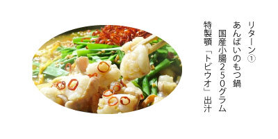 (1)本格かつお出汁と顎「トビウオ」出汁の国産もつ鍋2人前(店頭価格1,980円)