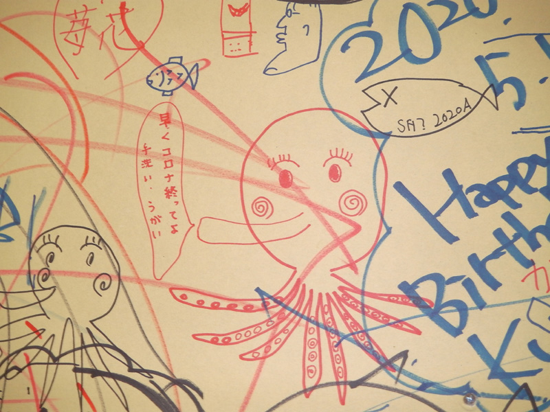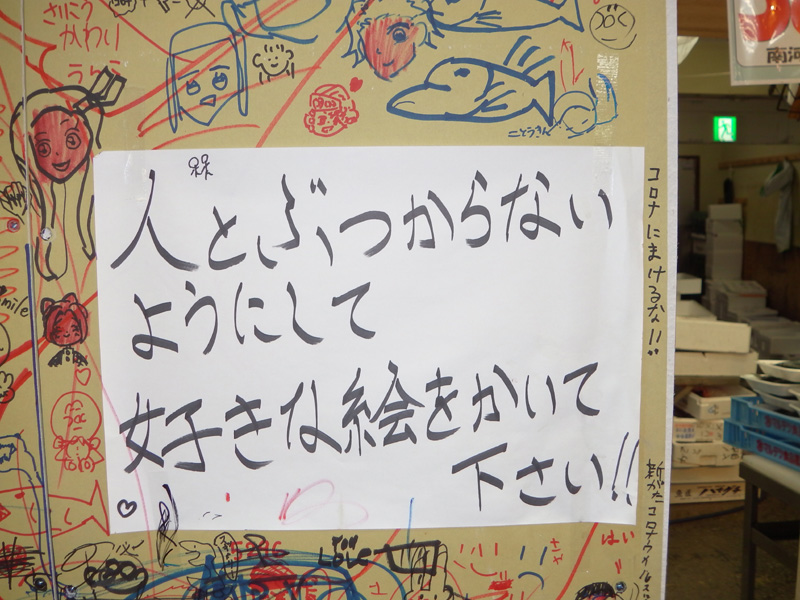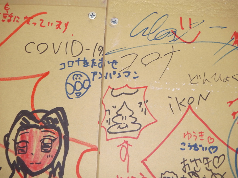 書いてあるのは、店へのメッセージや漫画のキャラクターなど、様々