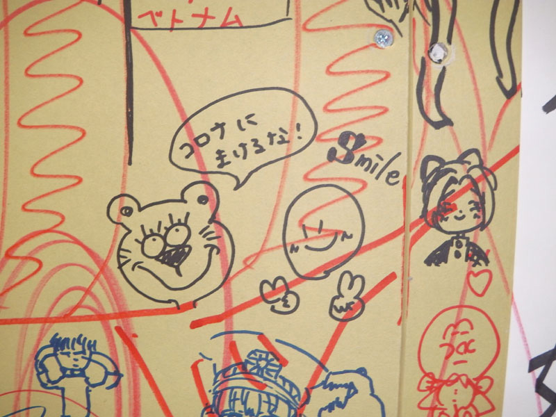 2週間ほどで石膏ボードキャンパスは沢山のイラストやメッセージで一杯になり