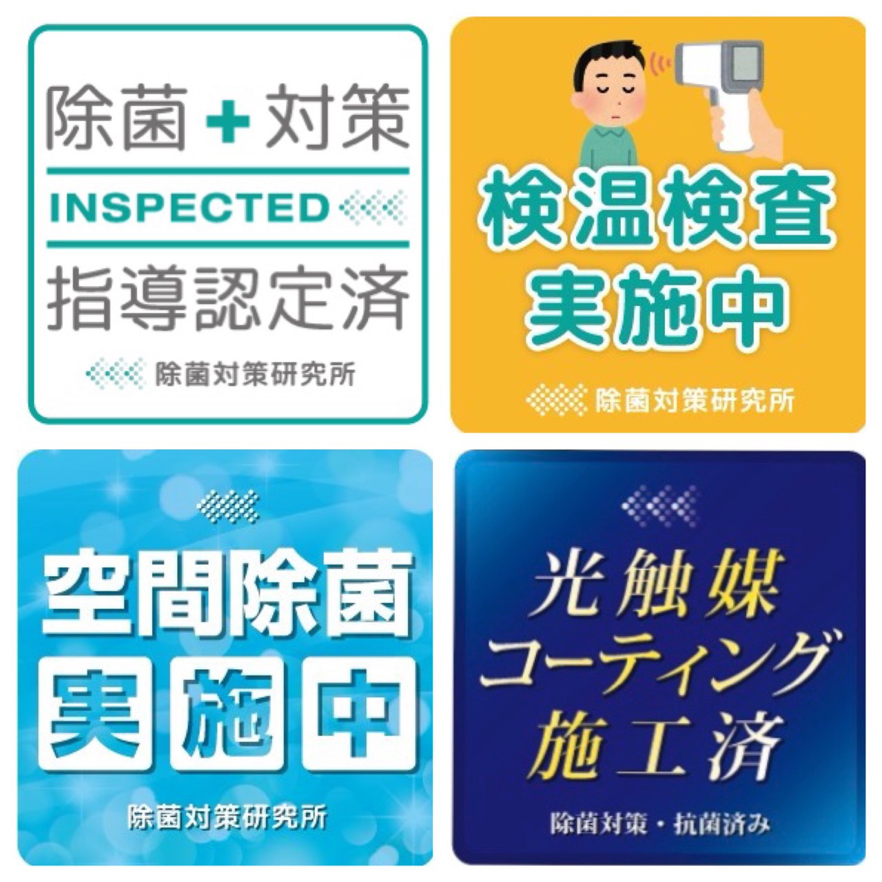 当研究所ではこうした施工サービスのほか、加盟店制度を設けております。当研究所へ加盟いただくことで、国の感染対策の原則に基づいた独自の除菌対策研究所プログラムでの指導を受けていただくことが可能になります。また、ウイルスや菌からの感染・除菌対策に取り組む加盟店には、日本初の集団感染発生時の駆け付けサポートや、除菌対策済認定証・除菌対策指導認定済ステッカー(1枚300円)の特典付きで、ステッカーなどは店舗に貼付することでお客様に安心してご来店いただくことができます。