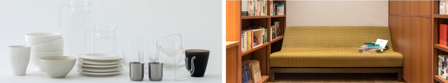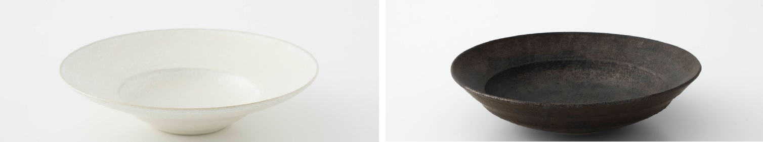 多くのファンに惜しまれながら2019年に閉店した京都・五条のカフェefish(エフィッシュ)から譲り受けた食器や家具を使用。その他、モノトーンに緊張感あるフォルムのバランスが美しいスープのためのお皿は、京都の清水焼団地にて工房を構える「素—shiro」の清水さんにフルオーダーしました。