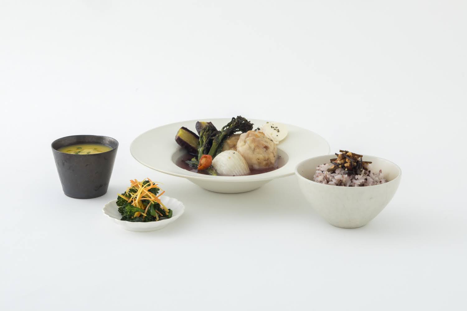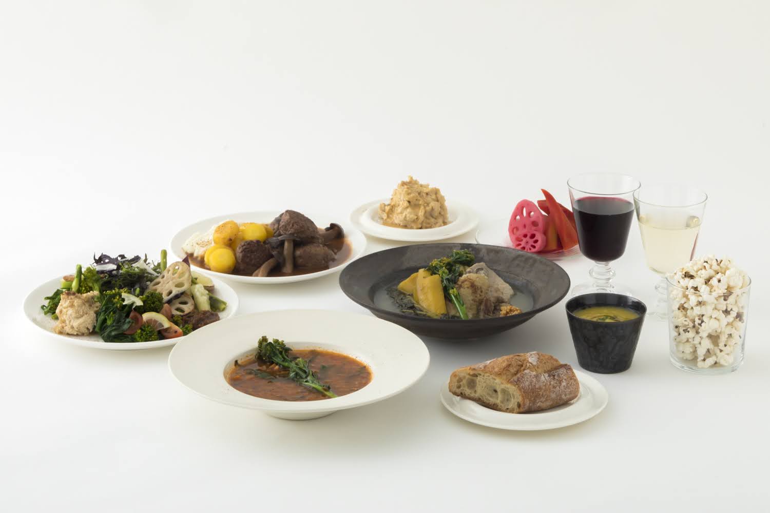 驚くような野菜を組み合わせたり、技ありのスパイスや調味料、旬の果物などを取り⼊れるなど、イメージは上質な家庭料理。野菜で満足したい女性がひとりでも来店しやすく、しっかり⾁料理で満足したい男性も足を運びたくなるビストロのようなメニュー構成です。3種のお肉と野菜をゆっく煮込んだポトフ・豆と雑穀のミネストローネ・煮込みミートボールのメインの他、サイドメニューも幅広く取り揃えます。客単価は3,500円〜 4,500円を想定。