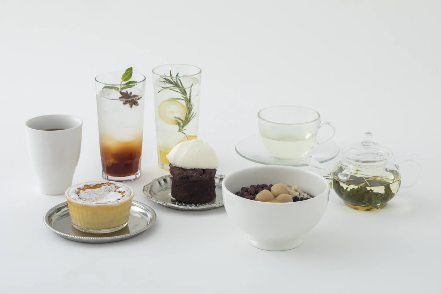 アルコールメニューは、京都の「エーテルヴァイン」のビオワイン・「京都醸造」のクラフトビールなど、当社と同姿勢の造り手が作ったものを、またその他のドリンクとして、ハーブや摘果の柑橘などの未利用資源も活用するコーディアルドリンクや、自家製のカスカラ・コーラやフルーツジュースなどノンアルコールメニューを取り揃えます。デザートには、平飼いたまごのプリン・ほんのり牛蒡が香るガトーショコラ・生姜の香りと食感が楽しめるチーズケーキなどを素材にこだわったスイーツを終日提供します。