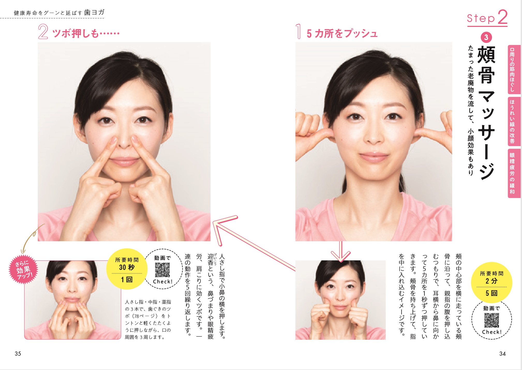 「ほうれい線の改善」「代謝の促進」など、効き目を理解しながら実践でき、モチベーションが上がります。