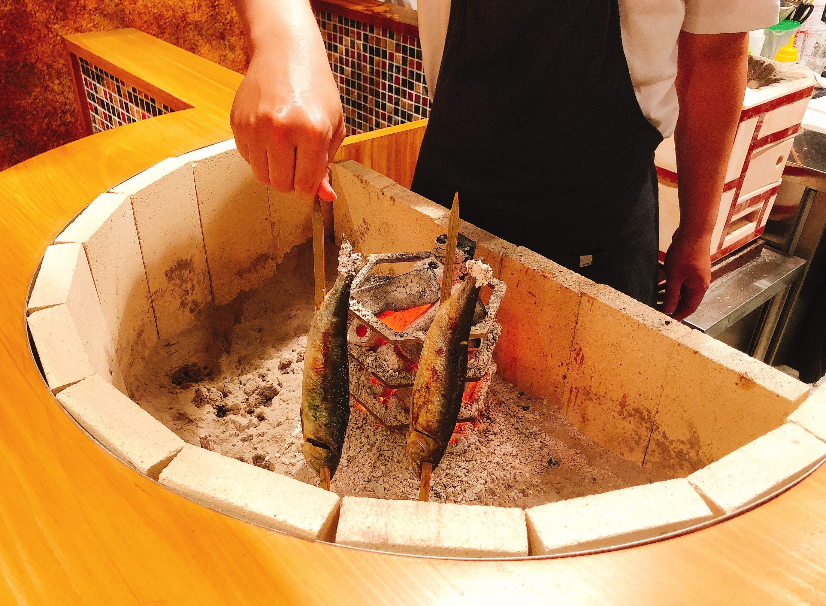 大きさ約30㎝の北海道産真いわしは、脂がのってジューシー。炭火の遠赤外線でゆっくり焼き上げます。