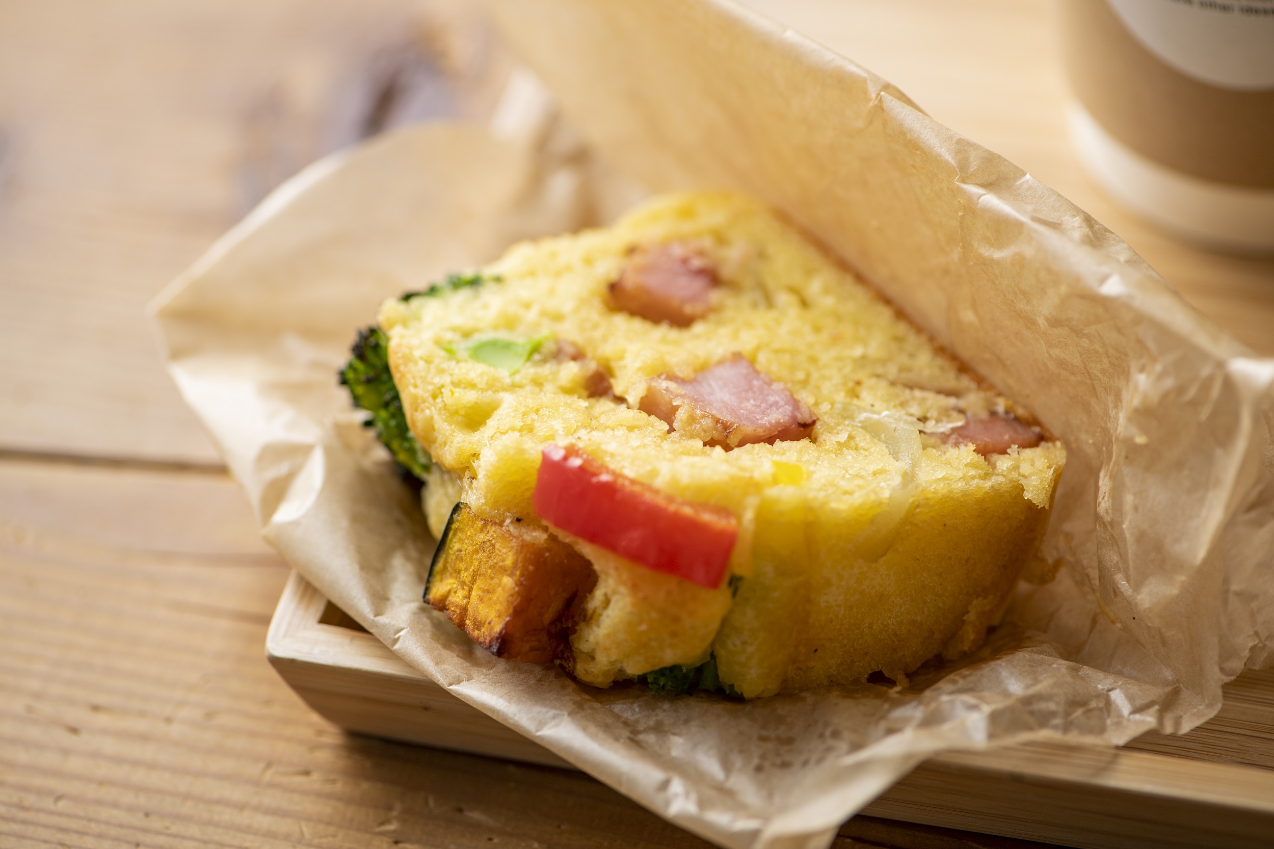 カレーランチ・・・カレーごとにスパイスを調合して、作っています。通常インドカレーなどのスパイスカレーは油が多くて胃もたれたりするのですが、当店は手間暇かけて油を取りきり、ハーブやスパイスの香りを楽しみながら、すっきりと味わっていただけます。ケークサレは小さくてもたっぷりと具材が入っているので、満腹感が得られます。ハーブやスパイスを使って毎朝焼き上げています。